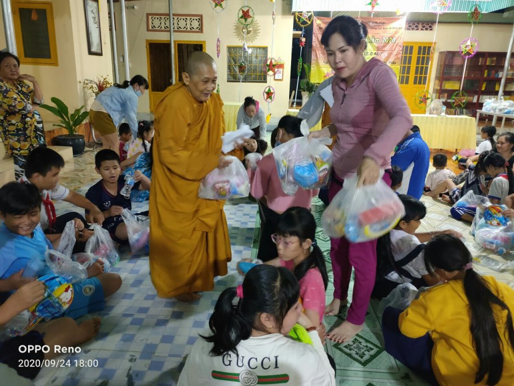 Trung thu năm nay Sư cô dự kiến tổ chức tại các tỉnh Long An, Tiền Giang, Đồng Tháp, BR - VT, Tây Ninh từ ngày 4 đến 18/8 năm Canh Tý và tặng bánh Trung Thu cho 21 đơn vị. Tổng số bánh và đèn Trung Thu là 3.550 cái bánh và 2.700 cái đèn, 2.700 quyển tập, 600 bóp viết. Ngày 20/9/2020 (nhằm ngày 4/8 năm Canh Tý), Ban HTĐLC vừa tổ chức tại chùa Giác Hoa và chùa Long Thành (huyện Tân Thạnh, tỉnh Long An) với hơn 400 em tham dự.