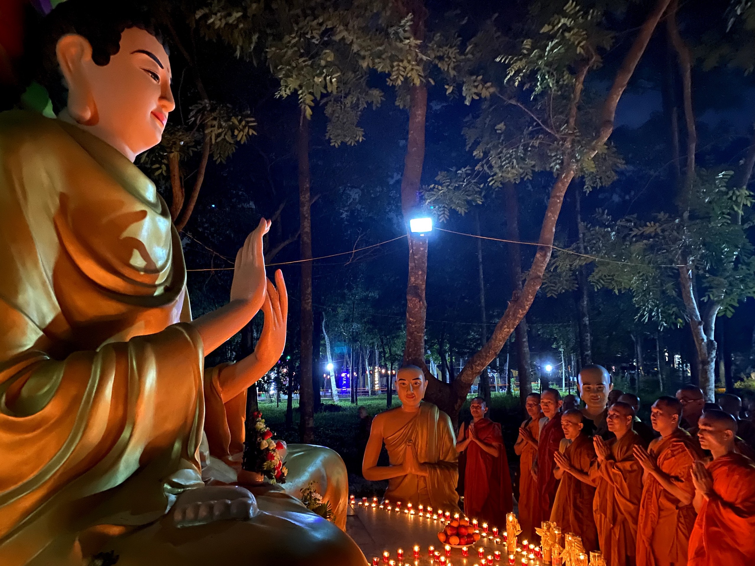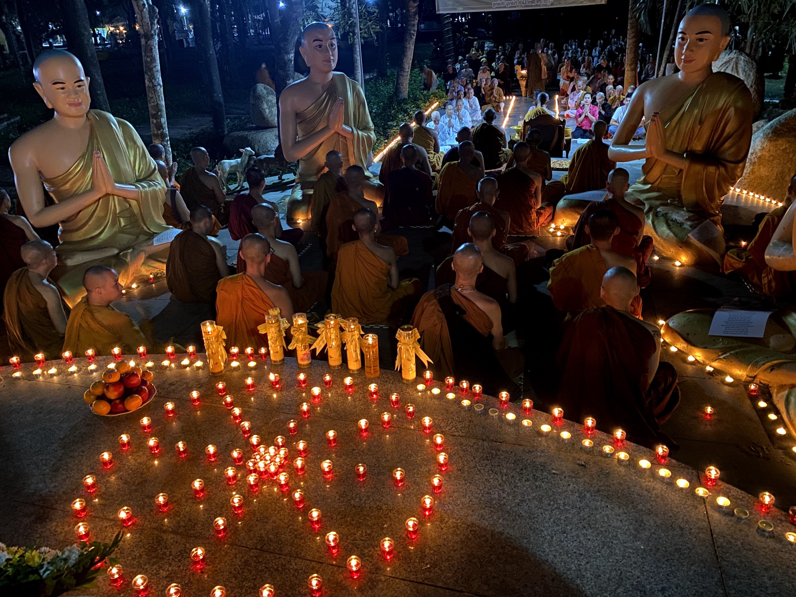 Những ngọn nến lung linh tỏa sáng được thắp lên xóa tan u minh, phá tan bóng tối đưa ánh sáng Phật pháp đến với hội chúng để năng lượng cộng hưởng thêm lớn mạnh trong buổi lễ tưởng niệm, tri ân. Hội chúng cùng bắt đầu ngân lên lời kinh nguyện cầu vang xa đến tam giới.