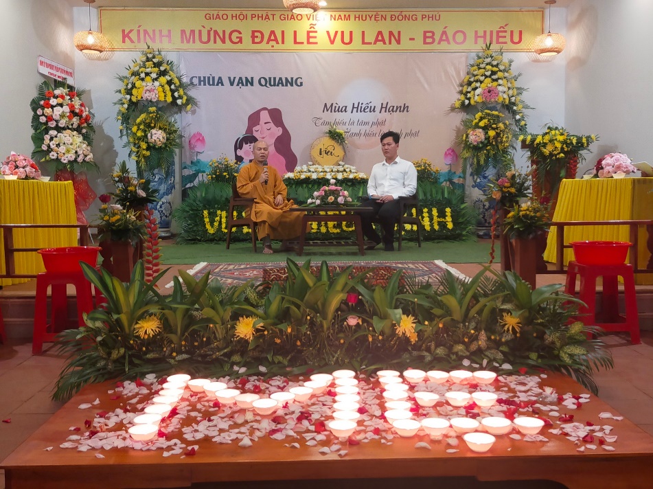 Đặc biệt, trong các ngày lễ của Phật giáo, chùa Vạn Quang luôn tuyên truyền để Phật tử thấm nhuần giáo lý của đạo Phật cũng như bồi dưỡng tình yêu thương gia đình, quê hương, đất nước. Những buổi tọa đàm ấm cúng, chân tình đã làm xúc động cho nhiều người dân và Phật tử tham dự. Bí thư tỉnh đoàn Trần Hoàng Trực chia sẻ: "Buổi tọa đàm rất có ý nghĩa vì dạy cho chúng ta biết đạo lý, truyền thống hiếu đạo, mà trên hết chỉ có hiểu sâu sắc về hiếu đạo thì chúng ta mới nên người, từ đó mới cống hiến cho xã hội và giúp ích cho cuộc đời".