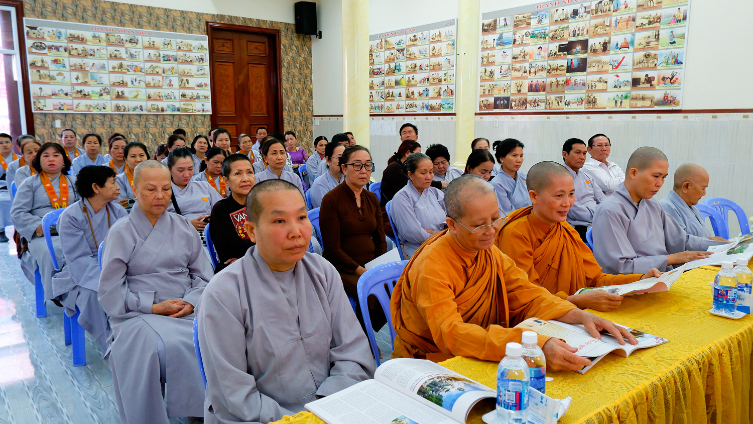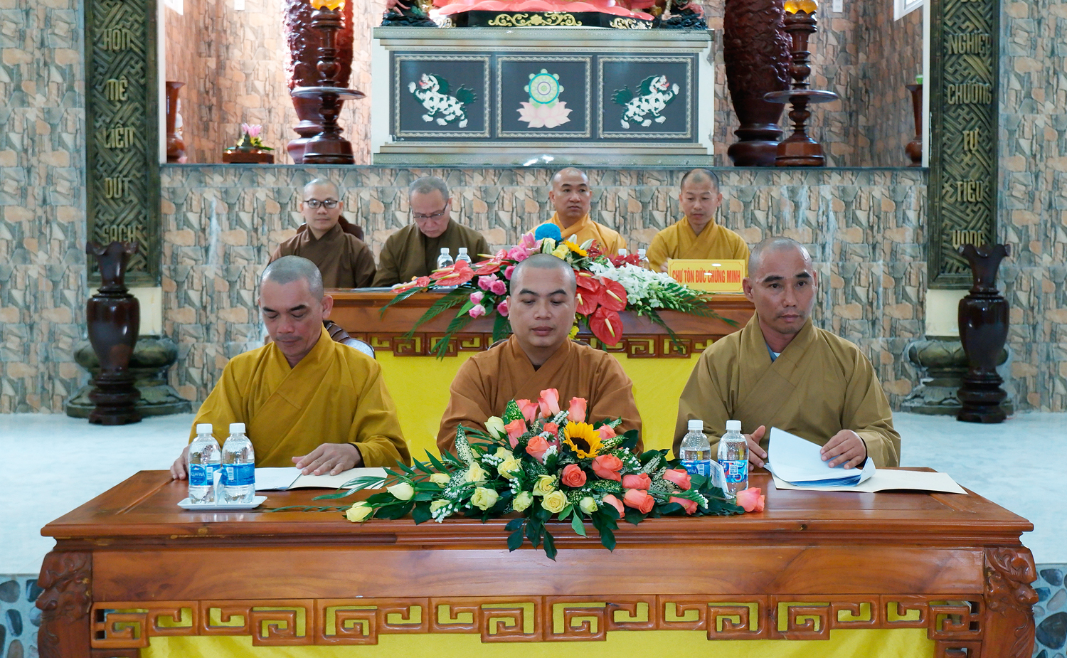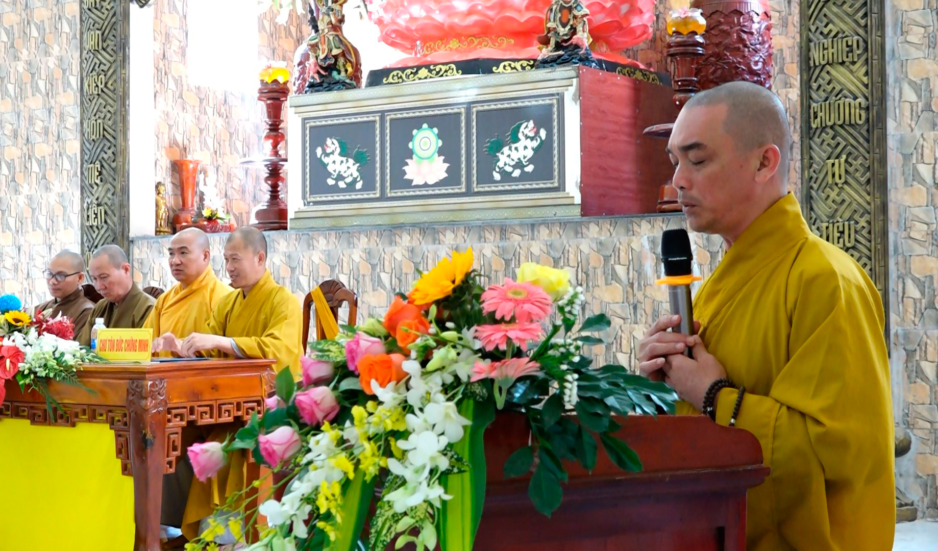ĐĐ.Thích Pháp Trí phát biểu khai mạcTheo báo cáo, TP.Phú Quốc có 9 ngôi tự viện, trong đó có 1 chùa Nam tông Khmer. Với tinh thần đoàn kết hòa hợp, chung tay đồng lòng của các thành viên cùng sự chỉ đạo của Thường trực BTS tỉnh, sự quan tâm, giúp đỡ của chính quyền, BTS Phật giáo thành phố đã đạt được những thành tựu quan trọng như: tham gia đầy đủ các khóa An cư kiết hạ, tuần lễ “thất nhựt giáo giới”, khóa bồi dưỡng trụ trì, Bố tát tụng giới; trùng tu, xây dựng mới các cơ sở tự viện, nhiều chùa trợ thành địa điểm du lịch cho khách hành hương chiêm bái; tổ chức các khóa tu Bát quan trai, Một ngày an lạc dành cho Phật tử kết hợp với hoằng pháp, thuyết giảng chánh pháp.
