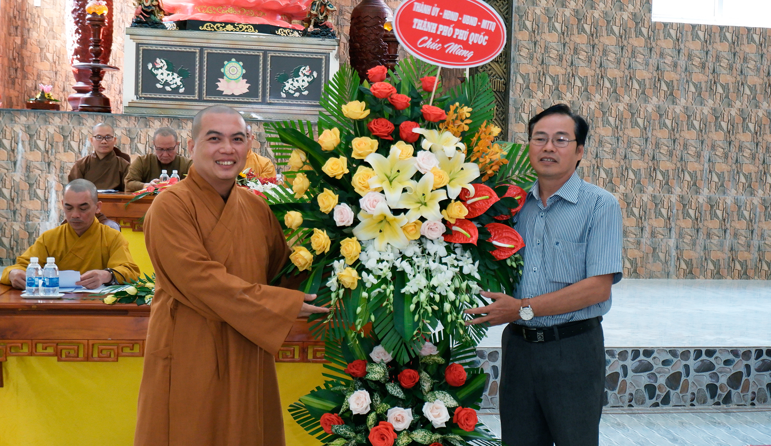 Phát biểu tại Hội nghị, ông Trần Minh Thuận thay mặt chính quyền ghi nhận và chúc mừng trước những thành tựu mà Phật giáo thành phố đạt được. Ông mong rằng Phật giáo Phú Quốc tiếp tục phát huy, đóng góp nhiều hơn nữa để góp phần đưa thành phố Phú Quốc xứng đáng là một trung tâm du lịch - thương mại - công nghệ cao.