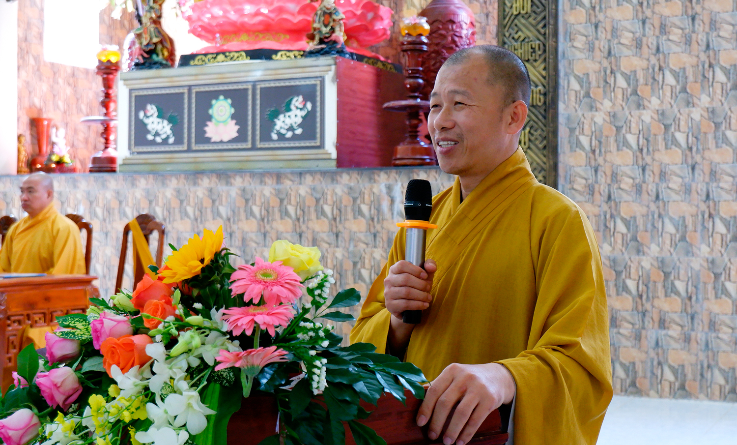TT.Thích Minh Nhẫn phát biểu chỉ đạoHội nghị hoàn mãn sau lời phát biểu cảm tạ của ĐĐ.Thích Huệ Minh, Ủy viên Thường trực kiêm Nghi lễ BTS PG thành phố Phú Quốc.