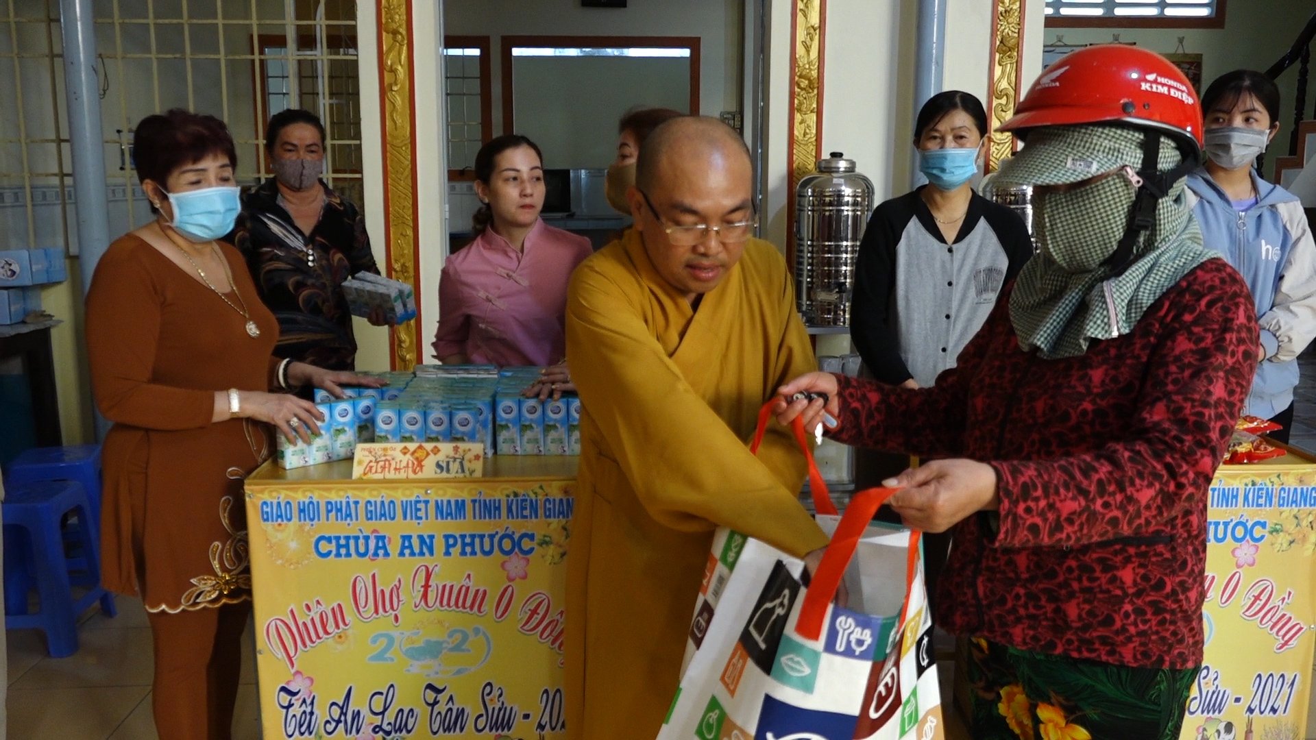 PSO - Sáng ngày 06/02/2021 (nhằm ngày 25 tháng Chạp năm Canh Tý), tại chùa An Phước (phường An Hoà, TP. Rạch Giá, tỉnh Kiên Giang) TT. Thích Phước Thắng - Phó ban BTS, Trưởng ban Giáo dục Phật giáo tỉnh, Trụ trì chùa An Phước đã tổ chức phiên chợ 0 đồng nhằm giúp đỡ bà con nghèo trên địa bàn nhân dịp Tết Nguyên Đán Tân Sửu.