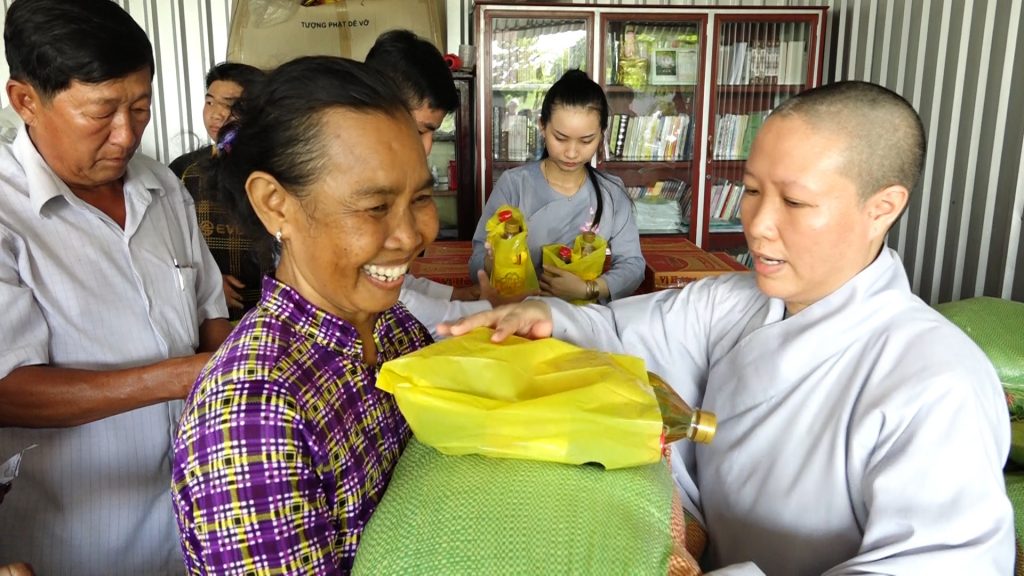 Với tấm lòng từ bi, cảm thông trước sự vất vả, khó khăn của người dân có hoàn cảnh khó khăn tại địa phương, Sư cô trụ trì đã vận động Phật tử chùa phát 200 phần quà gồm: Gạo,mì, nhu yếu phẩm... Mỗi phần trị giá 200.000 đồng tổng trị giá là 40 triệu đồng.