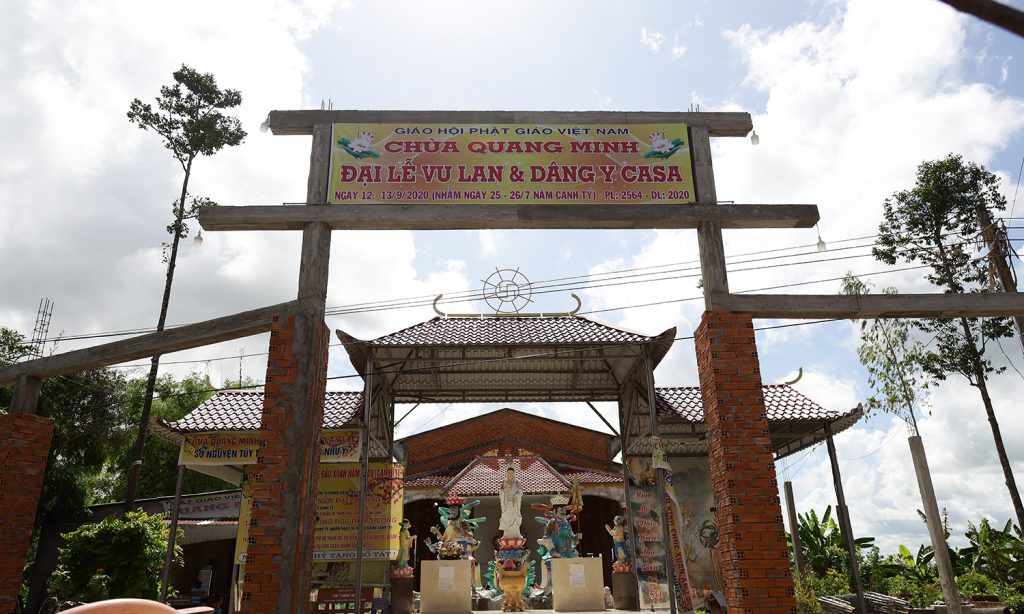 Đón tiếp đoàn có ĐĐ. Thích Phước Hải - Trụ trì chùa Quang Minh cùng ban lãnh đạo chính quyền địa phương xã Ngọc Thành, huyện Giồng Riềng.