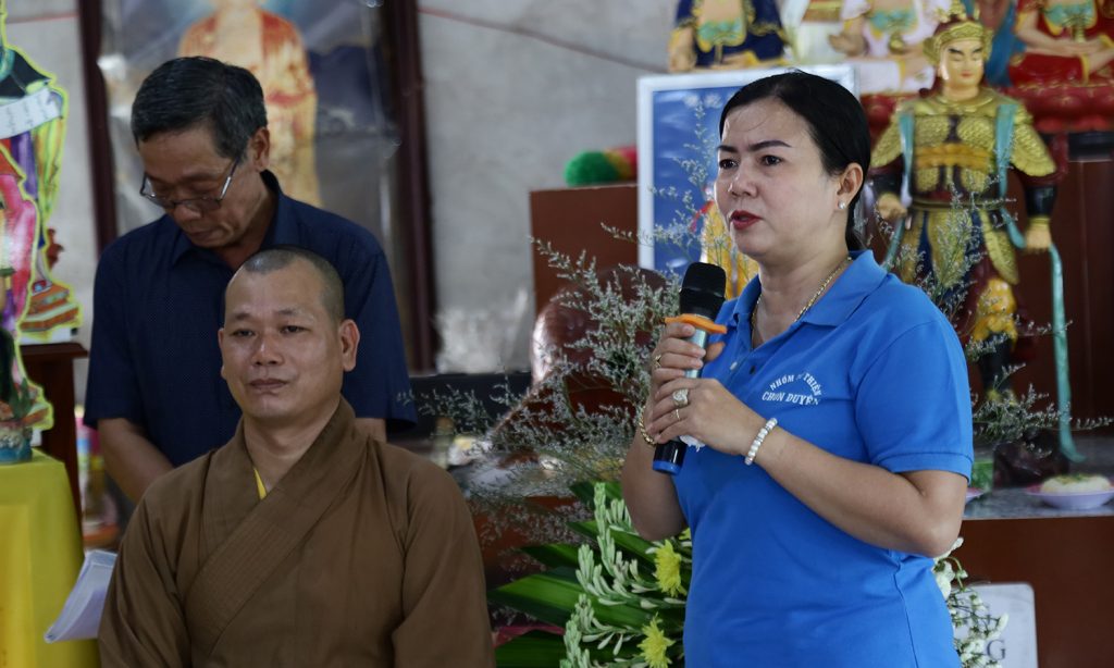Đại diện nhóm từ thiện Chơn Duyên, chị Thúy Loan xin gửi lời cảm ơn đến nhà tài trợ và chính quyền địa phương đã hỗ trợ tạo điều kiện thuận lợi cho buổi trao quà hôm nay.