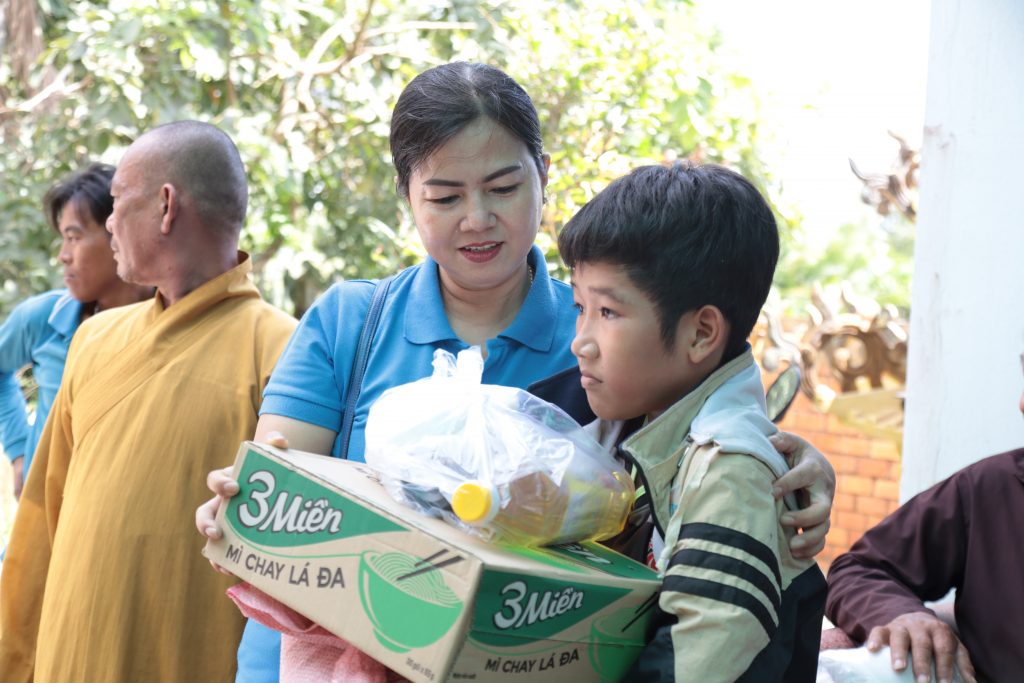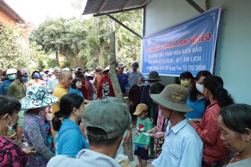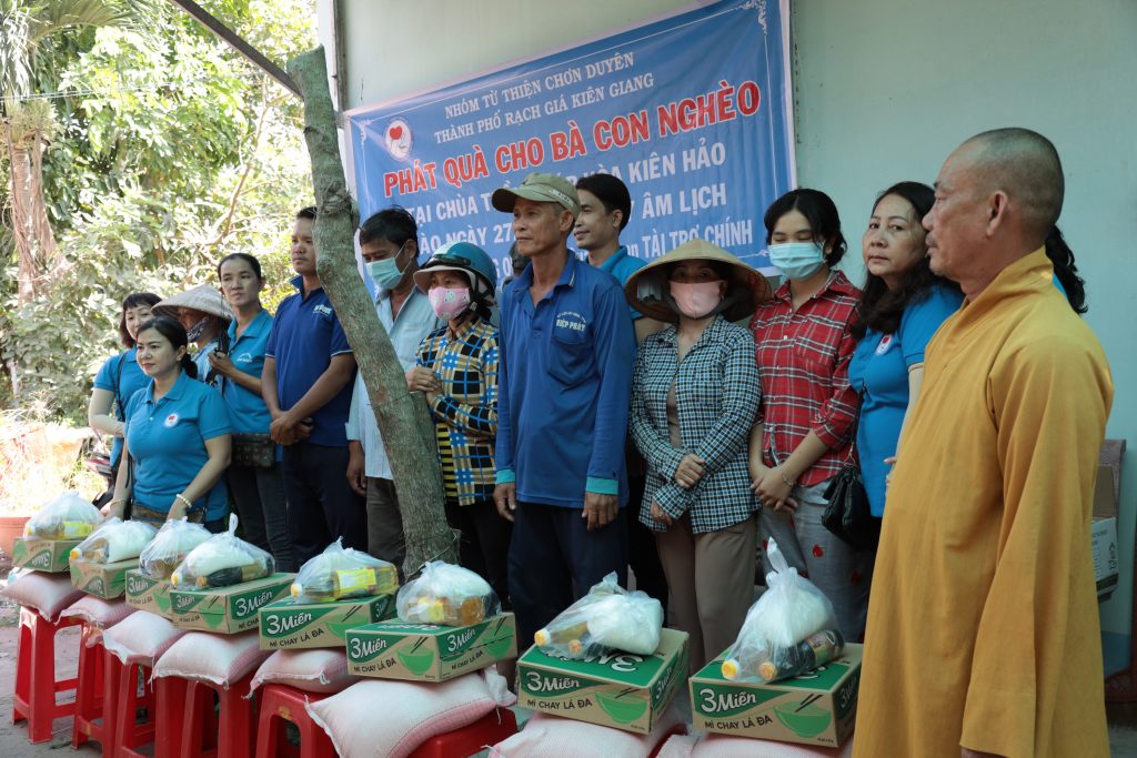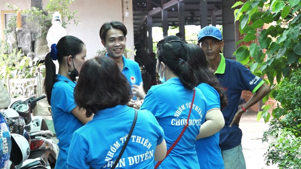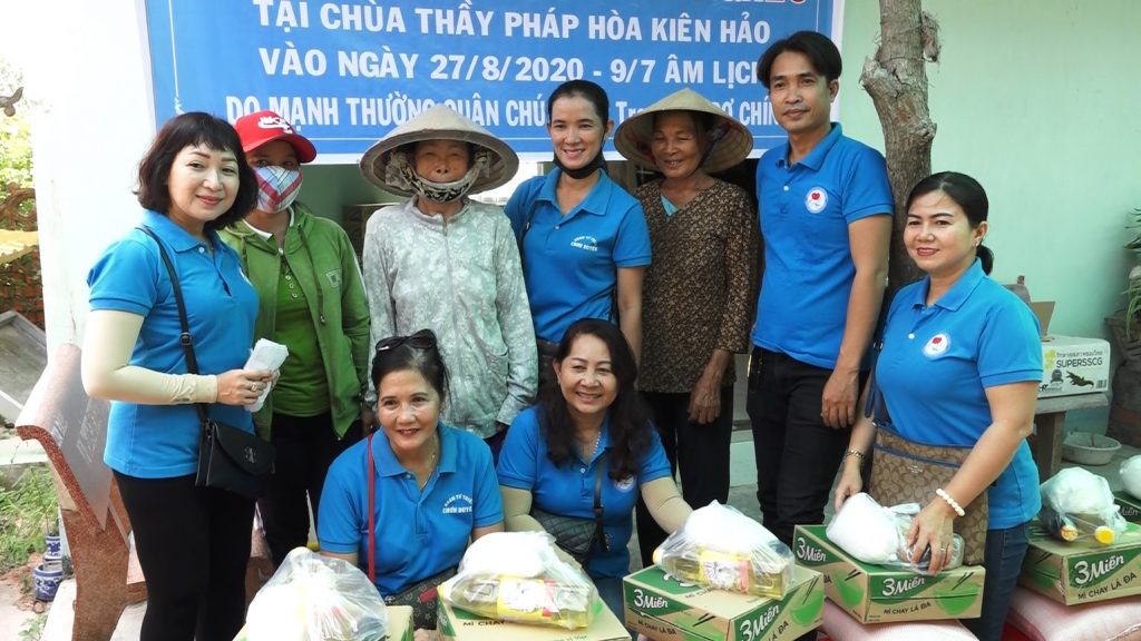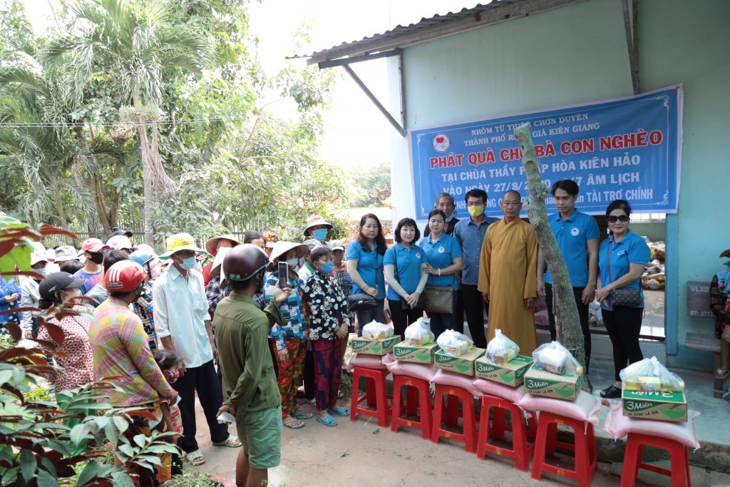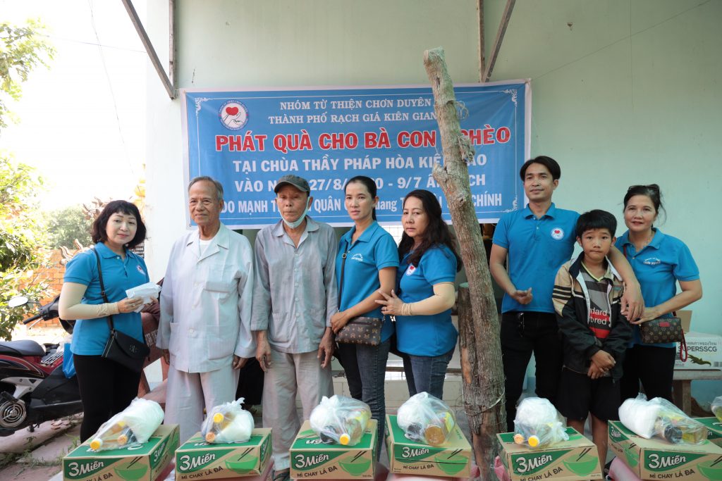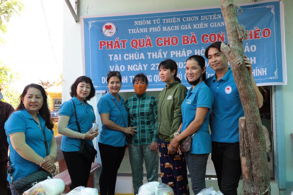 Đoàn từ thiện Chơn Duyên do chị Thúy Loan (pháp danh Chơn Duyên) làm trưởng đoàn và các anh chị em thành viên. Đoàn đại diện cho nhà Mạnh thường quân đến trao các phần cho bà con nghèo tại nơi đây.