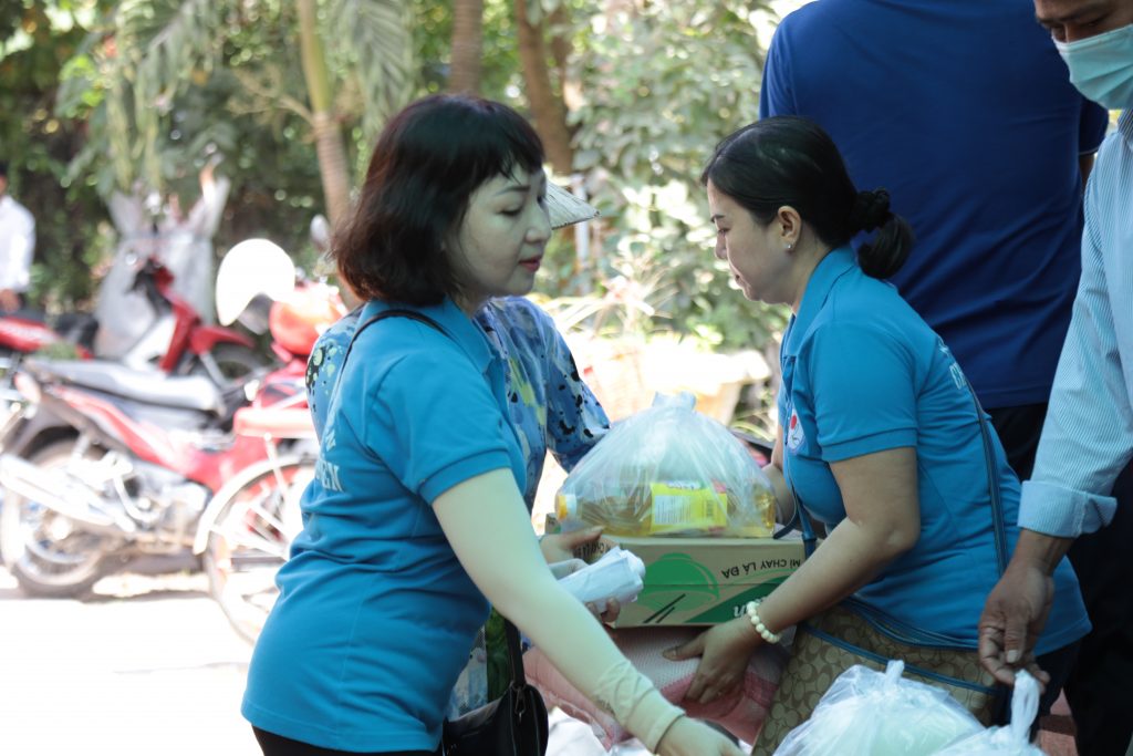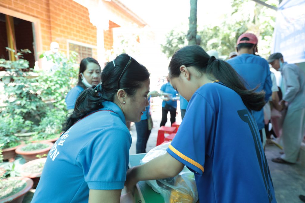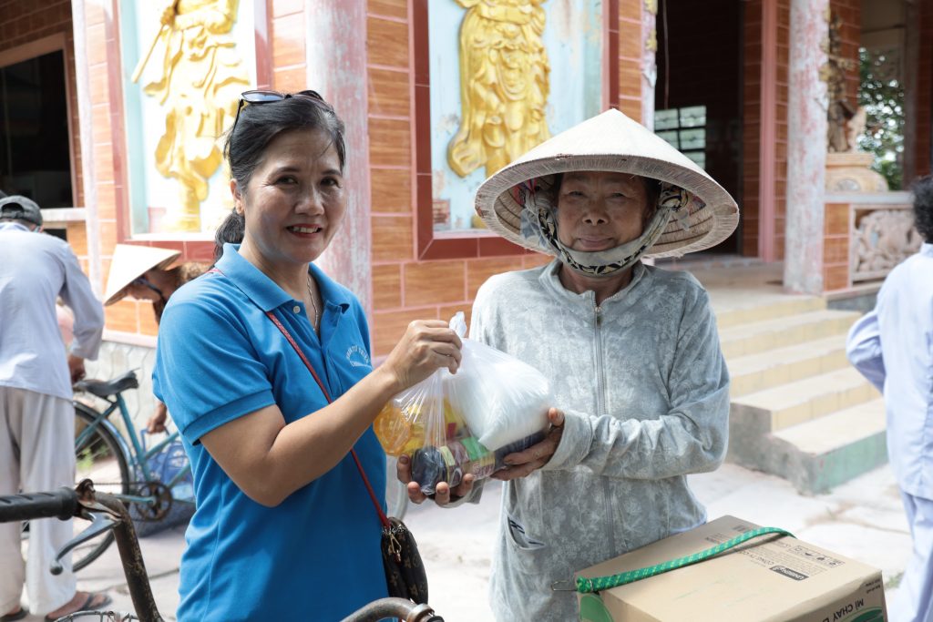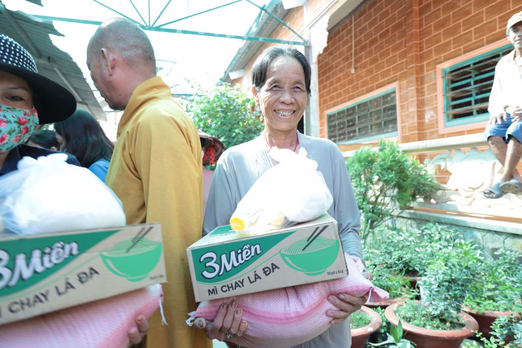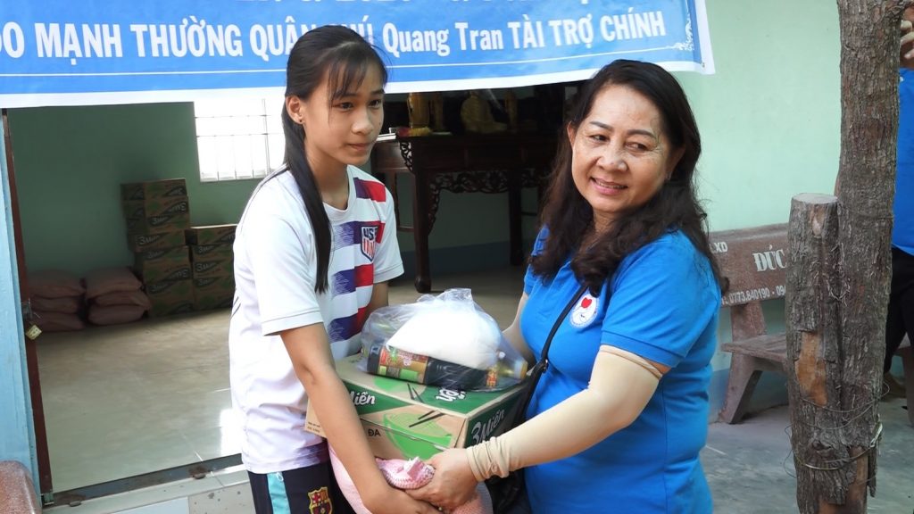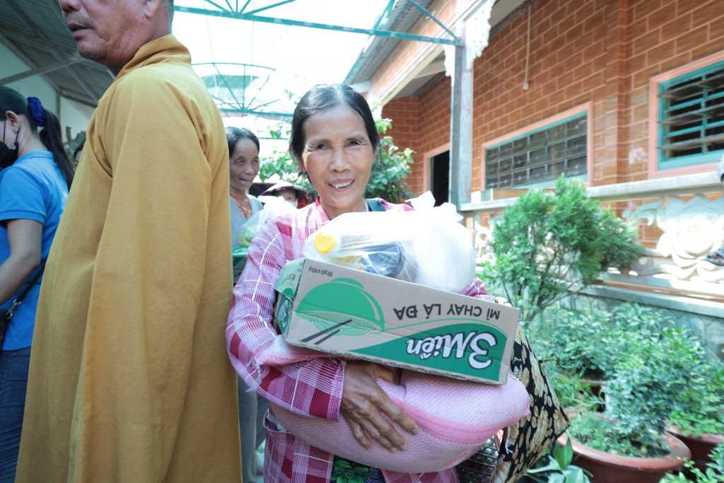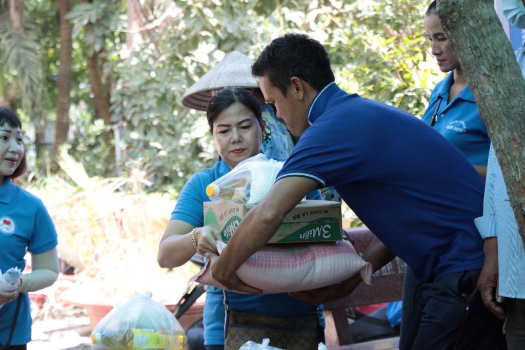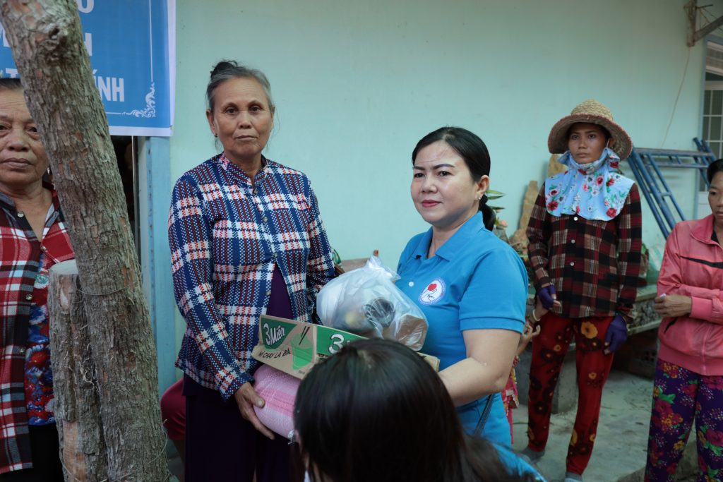 Đoàn từ thiện Chơn Duyên do chị Thúy Loan (pháp danh Chơn Duyên) làm trưởng đoàn và các anh chị em thành viên. Đoàn đại diện cho nhà Mạnh thường quân đến trao các phần cho bà con nghèo tại nơi đây.