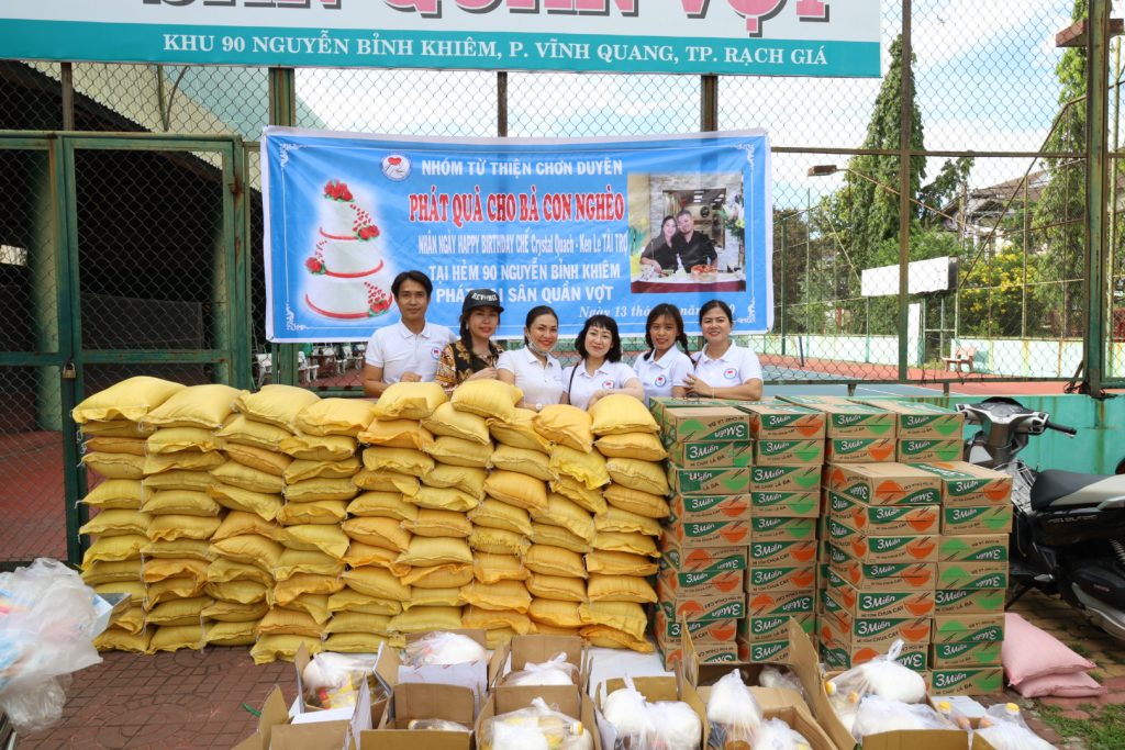 Đoàn từ thiện Chơn Duyên đã trao tặng hơn 100 phần quà đến các hộ gia đình có hoàn cảnh khó khăn. Kinh phí thực hiện đợt trao quà này do nhà hảo tâm Crytal Quach - Ken Le tài trợ. Phần quà gồm: Gạo, mì và các nhu yếu phẩm khác… với tổng giá trị hơn 23 triệu đồng.
