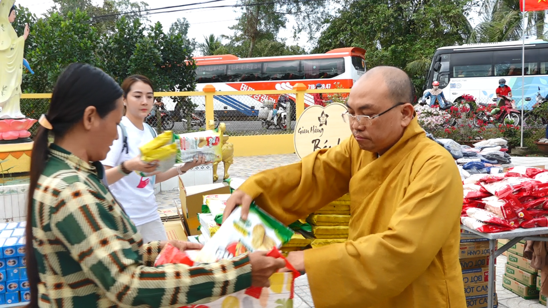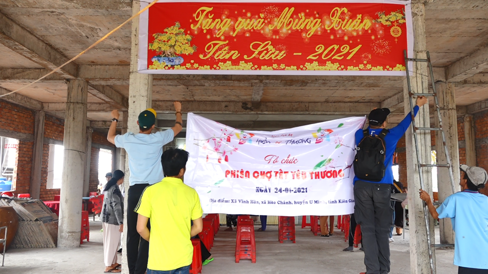 PSO - Nhằm san sẻ khó khăn với bà con trước thềm năm mới, sáng ngày 24/1/2021 (nhằm ngày 12 tháng Chạp năm Canh Tý), được sự gieo duyên của ĐĐ. Thích Xuân Trí - Ủy viên ban TTXH GHPGVN tỉnh Bến Tre, CLB Hiểu và Thương do Phật tử Hoa Đức làm chủ nhiệm đã phối hợp với BTS GHPGVN huyện U Minh Thượng tổ chức Phiên chợ tết yêu thương cho bà con có hoàn cảnh khó khăn trên địa bàn xã Vĩnh Hòa và xã Hòa Chánh, huyện U Minh Thượng, tỉnh Kiên Giang.