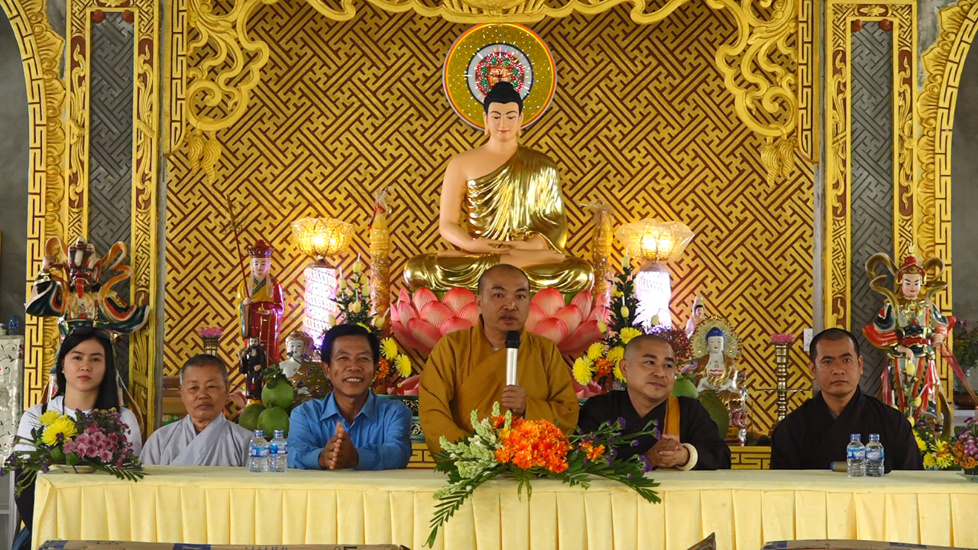 Mở đầu buổi lễ TT. Thích Phước Thắng đã thay mặt chư Tôn đức Thường trực trong BTS tỉnh cùng bà con nơi đây gửi lời tri ân đến ĐĐ. Thích Xuân Trí và Phật tử Hoa Đức cùng các thành viên trong CLB Hiểu và Thương khi đã tổ chức Phiên chợ Tết yêu thương cho bà con có hoàn cảnh khó khăn trên địa bàn huyện U Minh Thượng, giúp mọi người vơi bớt đi nỗi khó khăn, cơ cực trước thềm năm mới. Qua đó thể hiện tấm lòng của người con Phật trong việc chia sẻ nỗi khó khăn với bà con, giúp mọi người được vui xuân đón tết.