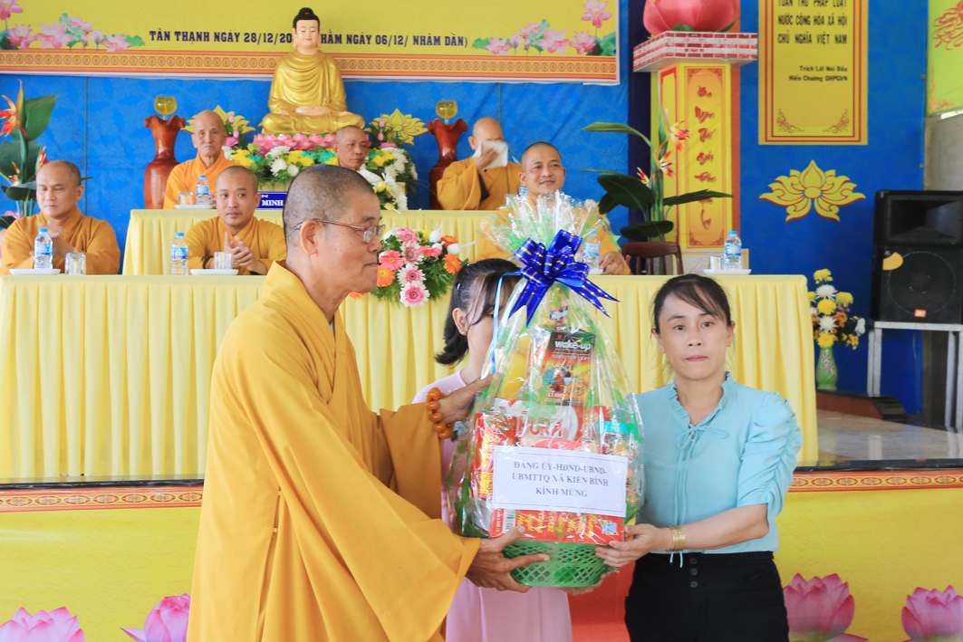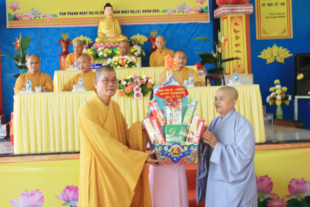 Ban lời đạo từ cao quý cho buổi lễ, HT. Thích Thiện Huệ, Thành viên HĐCM TƯ GHPGVN, Chứng minh BTS GHPGVN tỉnh đã có lời tán thán những công tác Phật sự của BTS PG huyện Tân Thạnh đạt được. Hoà thượng hoan hỷ khi chư Tôn đức, đồng bào Phật tử đã luôn thực hiện theo đúng hiến chương, các quy định của Nhà nước. Đồng thời bày tỏ niềm hoan hỷ của mình khi chính quyền địa phương luôn quan tâm đến đời sống của nhân dân. Hòa thượng nhấn mạnh về các công tác An sinh xã hội, bởi chỉ có an sinh xã hội thì mới có an ninh trật tự, đời sống an vui, hạnh phúc. Đây cũng là một cách thể thiện lòng từ bi, cứu khổ của đạo Phật trên tinh thần nhập thế. Hòa thượng mong rằng BTS huyện hãy tiếp tục thực hiện các phương hướng hoạt động có lợi ích hơn nữa. Nhân dịp này, Hòa thượng gửi lời chúc cao quý, đón một mùa Xuân mới an lành.