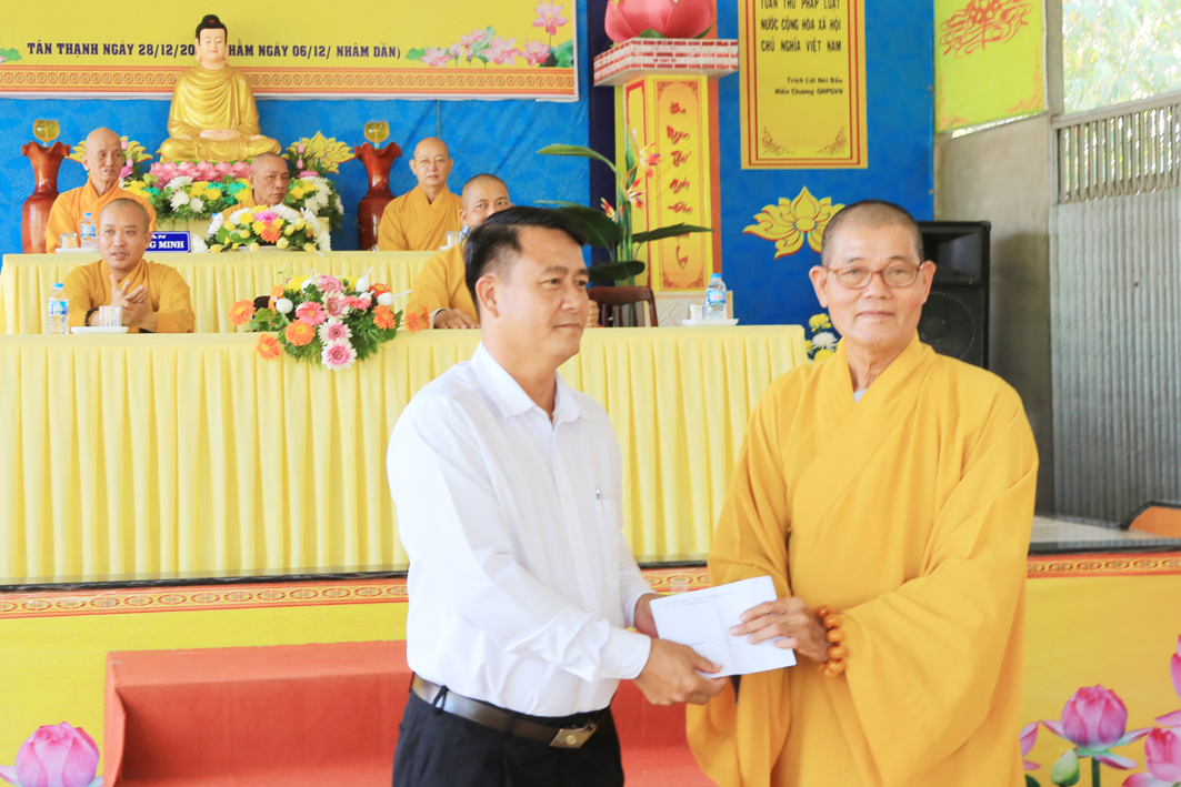 Quang lâm về chứng minh và tham dự Hội nghị có HT. Thích Thiện Huệ, Thành viên HĐCM TƯ GHPGVN, Chứng minh BTS GHPGVN tỉnh Long An; HT. Thích Quảng Ý, Chứng minh BTS GHPGVN tỉnh; TT. Thích Quảng Tâm, Uỷ viên HĐTS, Phó trưởng ban Thường trực BTS GHPGVN tỉnh; ĐĐ. Thích Lệ Duyên, Phó ban kiêm Chánh Thư ký BTS GHPGVN tỉnh, Trưởng BTS GHPGVN huyện Đức Hòa; TT. Thích Lệ Tấn, Uỷ viên Thường trực BTS GHPGVN tỉnh, Trưởng BTS GHPGVN huyện Tân Thạnh; TT. Thích Lệ Thông, Phó trưởng ban Thường trực BTS GHPGVN huyện Tân Thạnh; chư Tôn đức Thường trực BTS GHPGVN huyện Tân Thạnh, chư Tôn đức các ban chuyên ngành trực thuộc BTS Phật giáo huyện, chư Tôn đức Tăng Ni hiện đang tu học trên địa bàn huyện đồng về tham dự.