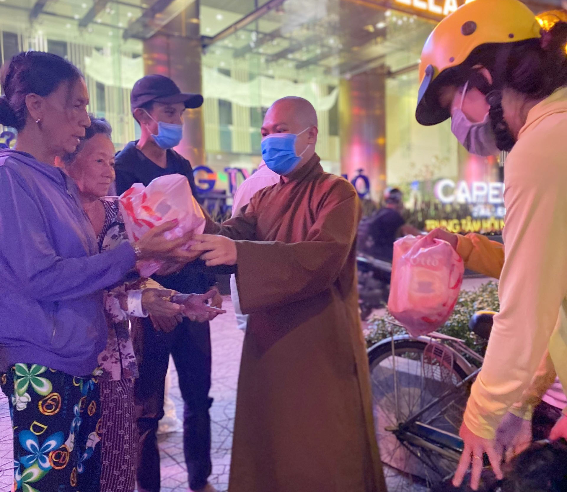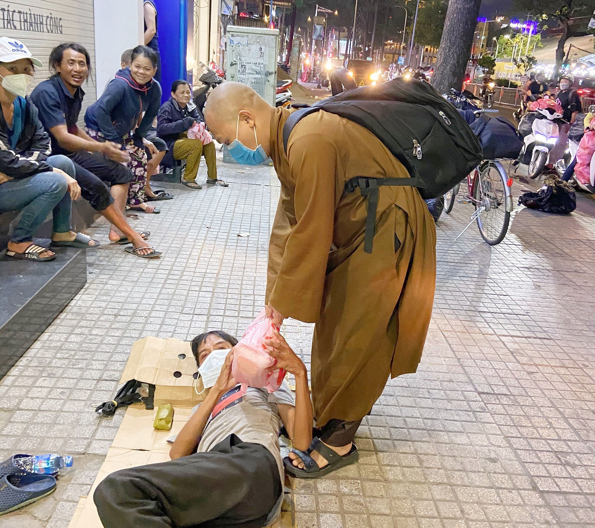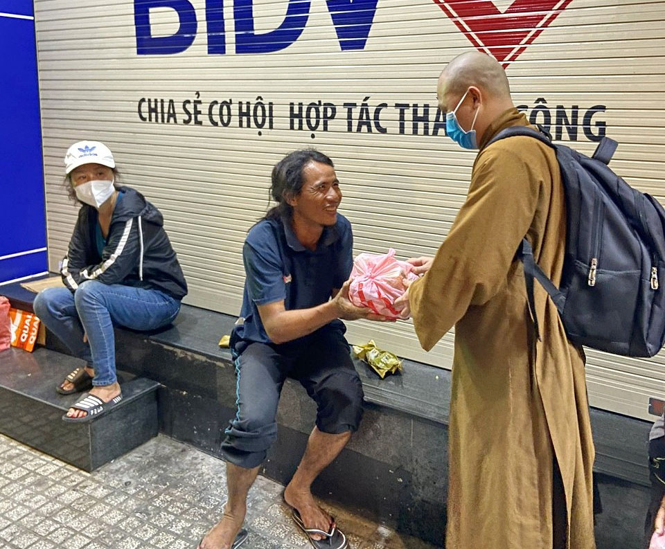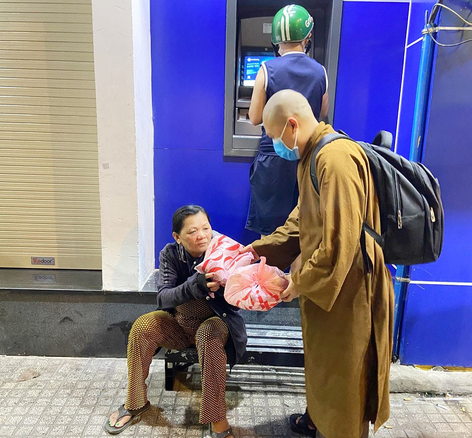 PSO - Tối ngày 19/03/2021, ĐĐ. Thích Minh Tựu cùng nhóm bạn trẻ đã tổ chức chương trình xuống phố phát 200 phần quà yêu thương đến người vô gia cư có hoàn cảnh khó khăn như: bán vé số, nhặt ve chai, chạy xe ôm, xích lô, trẻ em cơ nhỡ trên địa bàn TP. HCM.