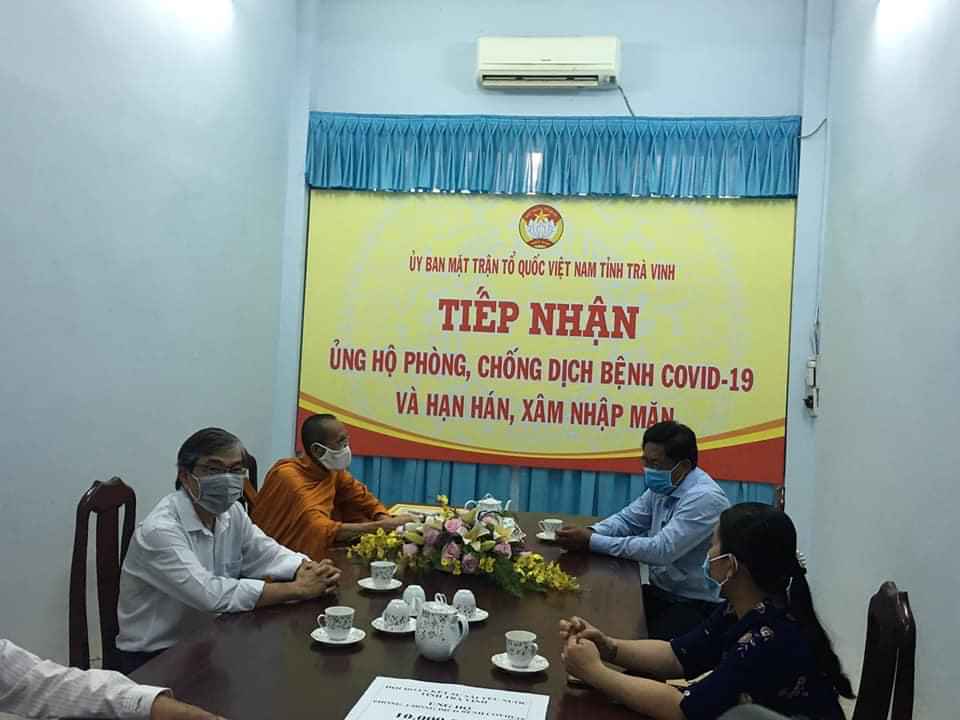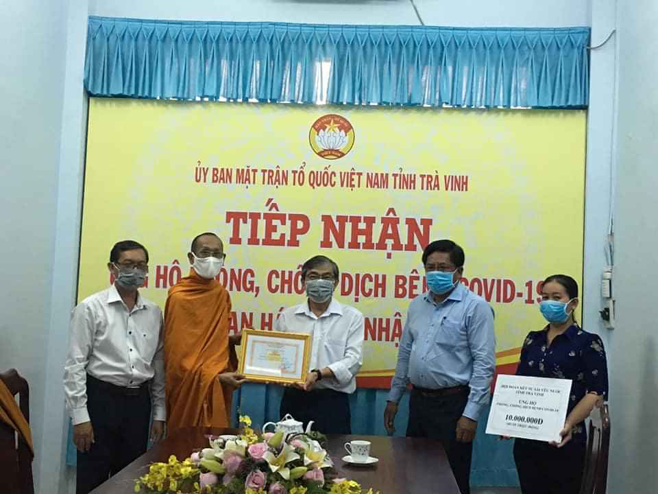 Được sự ủy nhiệm của Hòa thượng Thạch Sok Xane - Phó chủ tịch HĐTS GHPGVN, Chủ tịch Hội ĐKSSYN tỉnh, HT. Thạch Oai - Phó BTS GHPGVN tỉnh Trà vinh, Phó chủ tịch Thường trực Hội ĐKSSYN tỉnh đã đến trao tặng 10 triệu đồng, công ty MTV XSKT tỉnh Trà Vinh trao tặng 2 tỷ đồng nhằm chung tay cùng tỉnh phòng chống dịch bệnh Covid-19,...