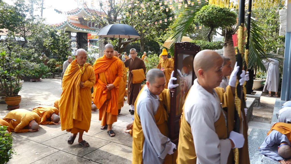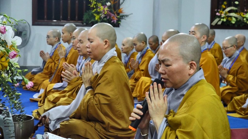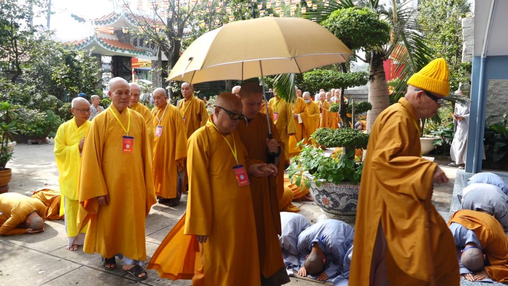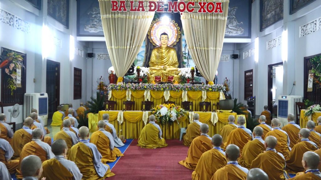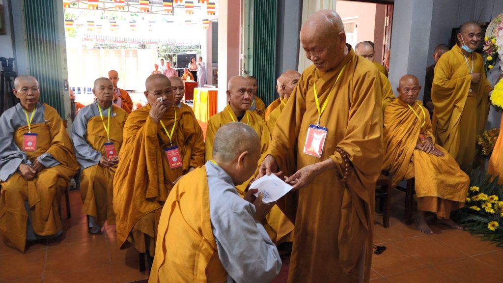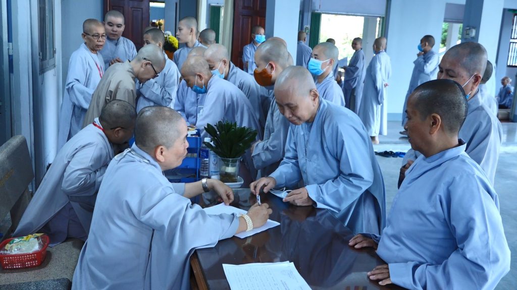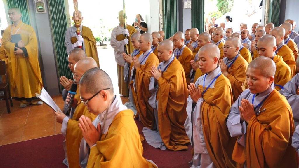 Sau nghi thức trang nghiêm cung đón di ảnh cố HT.Thiện Hoa, quý Ni trưởng, Ni sư đã niệm hương, bạch Phật, các giới tử đã được cung đón chư Tôn đức BTS GHPGVN tỉnh Vĩnh Long đến chứng minh và sách tấn cho hàng Ni giới.