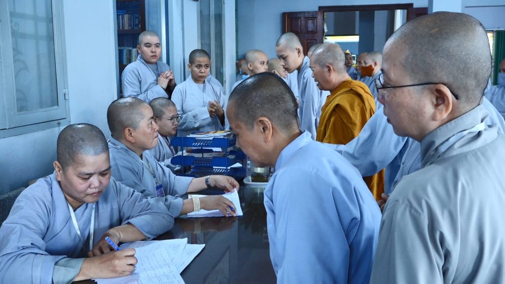 Cuối ngày Ban tổ chức giới trường Ni đã tổ chức phần thi khảo thí phát thưởng cho các giới tử có thành tích tốt và đồng thời cho các giới tử tụng kinh sám hối.