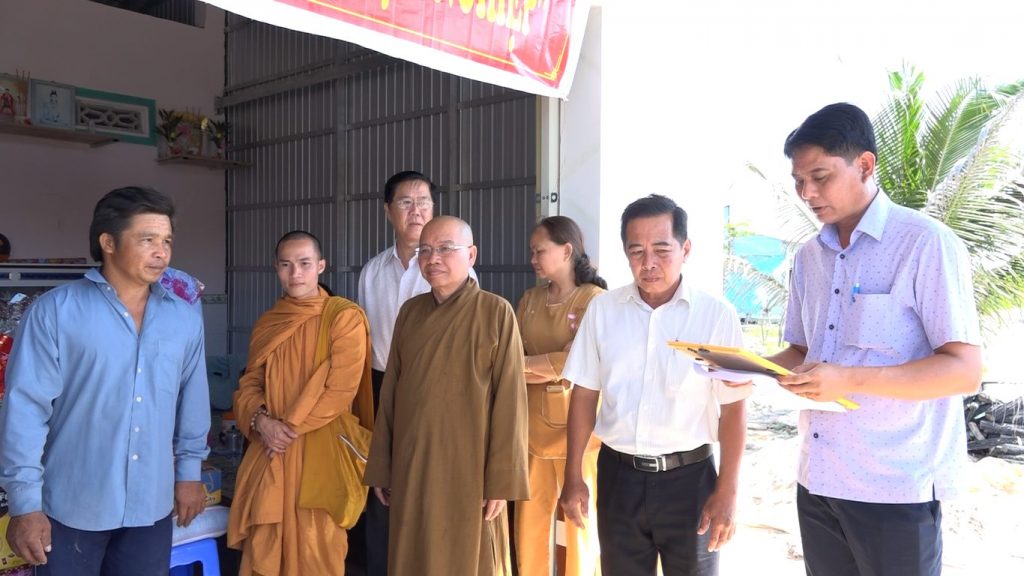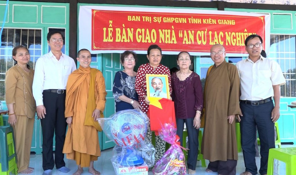 Quang lâm tham dự buổi lễ trao nhà có ĐĐ. Thích Tuệ Giải – Phó thư ký, Chánh văn phòng BTS, Trưởng ban Thông tin truyền thông GHPGVN tỉnh Kiên Giang; ĐĐ. Thích Minh Hậu - Ủy viên BTS GHPGVN tỉnh cùng các Phật tử chùa Phật Quang, tịnh xá Ngọc Sơn (TP. Rạch Giá) đồng tham dự.