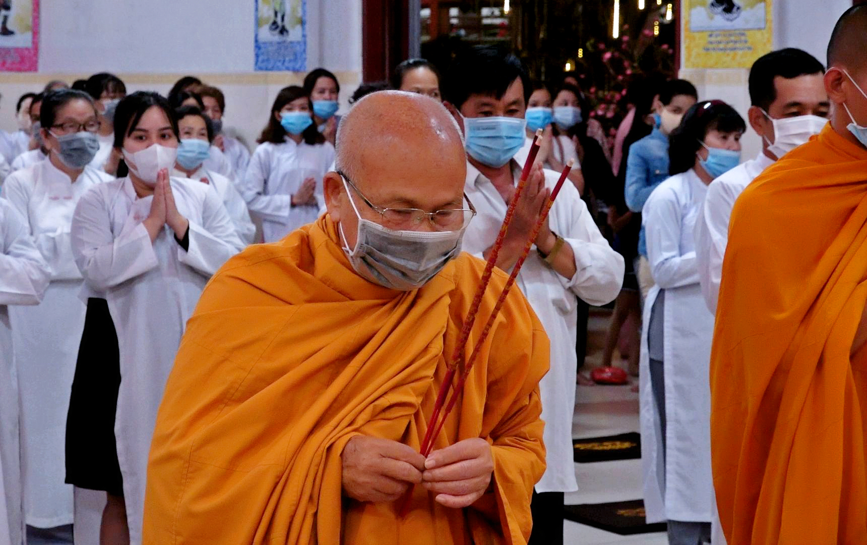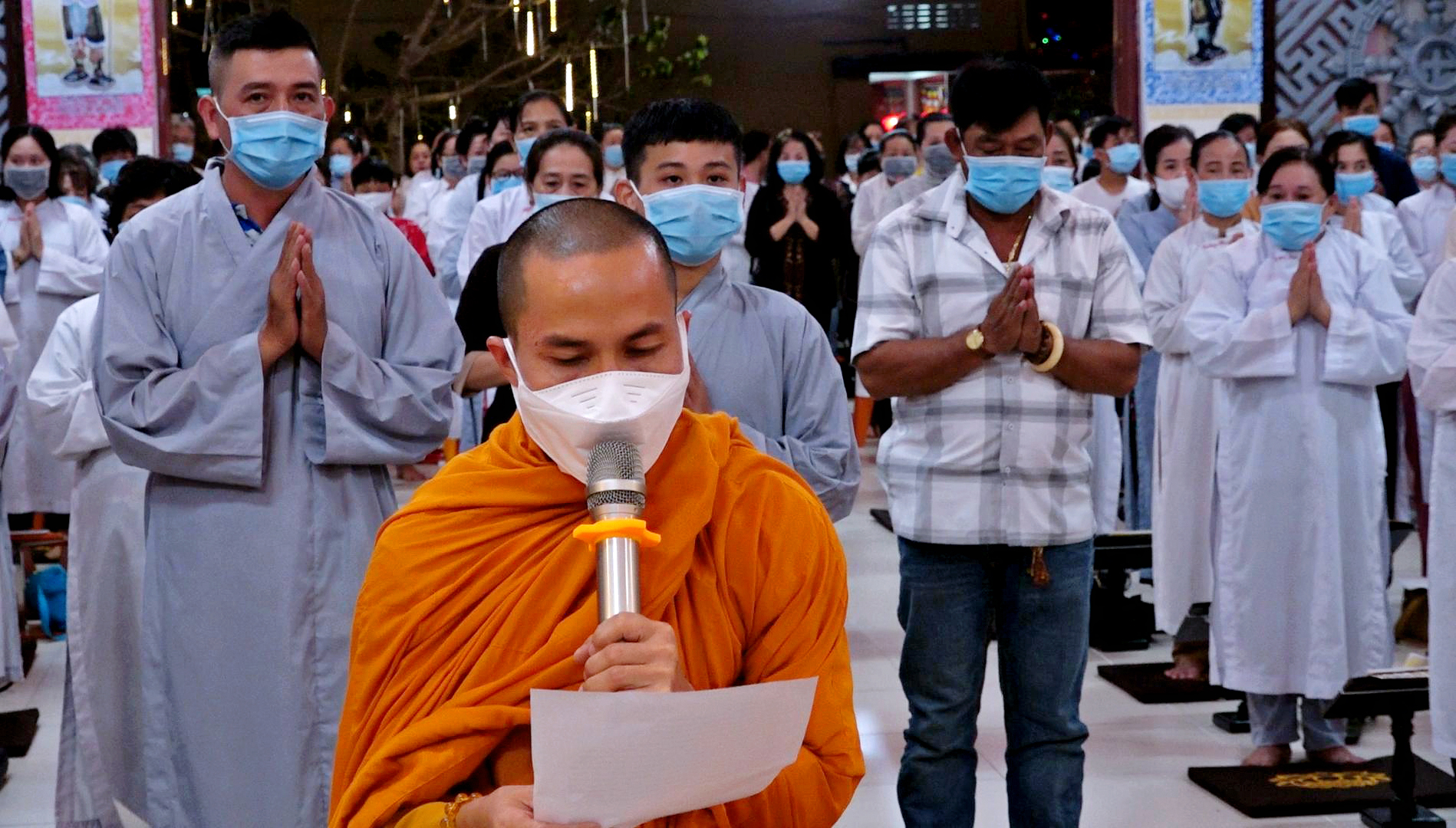 Tại đây Hòa Thượng cũng tuyên truyền, nhắc nhở đến các Phật tử về ý thức, trách nhiệm để mọi người chung tay cùng xã hội phòng, chống dịch bệnh Covid-19.