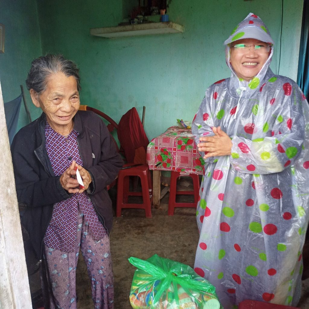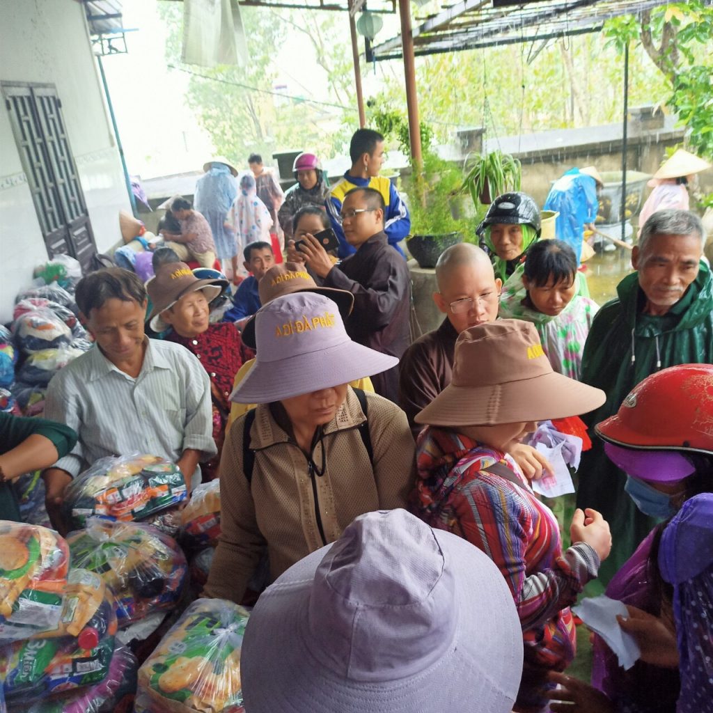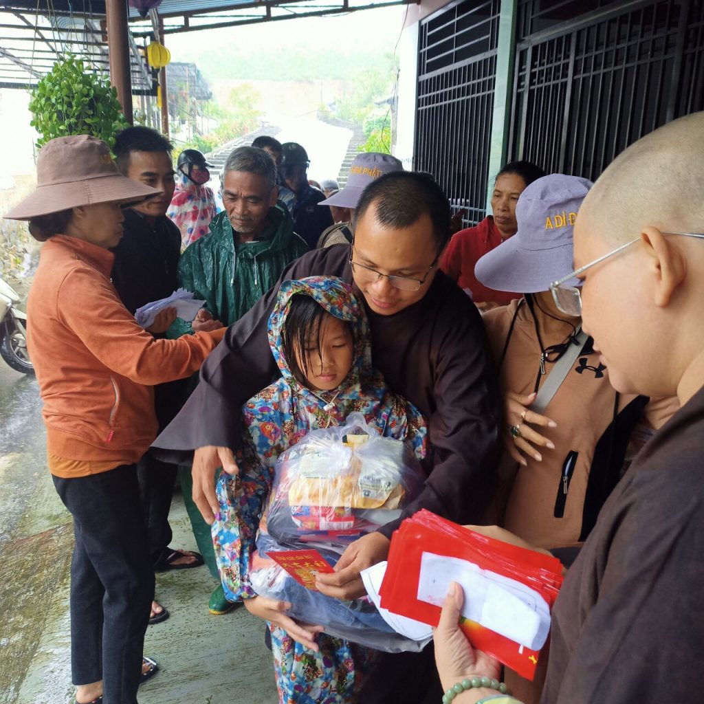 Sư cô trưởng đoàn đã thăm hỏi, động viên và trao 100 phần quà cho bà con nơi đây. Mỗi phần quà trị giá 500 ngàn đồng, bao gồm nhu yếu phẩm và tiền mặt. Tổng trị giá cho chuyến từ thiện là 50 triệu đồng. Những phần quà là nguồn động viên lớn lao đến bà con và có ý nghĩa tiếp sức cùng bà con trong cơn hoạn nạn để sớm ổn định cuộc sống.