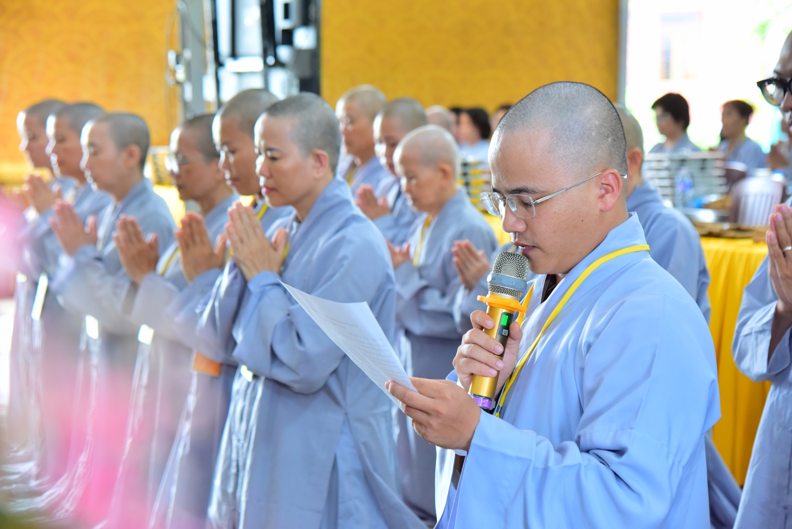 Phát biểu tại lễ bế mạc, Thượng toạ Trụ trì tán dương công đức phát tâm tu học của 223 hành giả thế phát đoản kỳ và hơn 100 hành giả thọ Bát quan trai giới. Thượng toạ cho rằng khoá tu kết thúc không đồng nghĩa sự tu học ngang đây sẽ dừng lại. Trở về với đời sống thế tục, Thượng toạ hy vọng mỗi hành giả tiếp tục nuôi dưỡng tâm bồ đề, đồng hành, hộ trì Tam Bảo bằng niềm tin chánh tín. Cũng nhân đây, Thượng toạ gửi gắm đôi lời tâm tình đến các hành giả phát tâm xuất gia sau khoá tu. Qua đây, hy vọng ý nguyện xuất trần của các hành giả tín thành sẽ sớm được hiện thực hoá trong thời gian không xa.