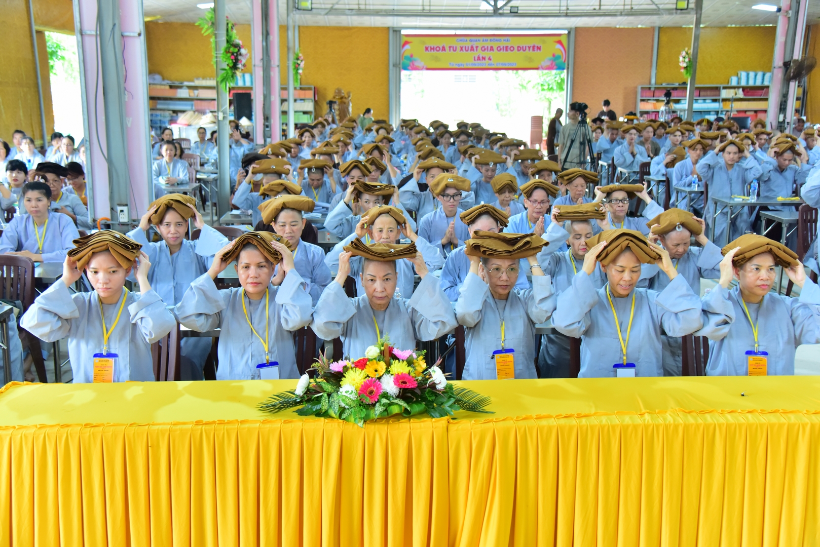 Trước khi khoá tu Xuất gia gieo duyên lần 4 chùa Quan Âm Đông Hải chính thức khép lại, 223 hành giả tham gia khoá tu đã xướng lời xả giới, hoàn lại y hậu cho Tăng đoàn cùng hơn 100 hành giả xướng lời xả giới Bát quan trai kết thúc trọn vẹn 7 ngày trải nghiệm tu học dưới tư cách Sa di, Sa di Ni, cư sĩ Bát quan trai.