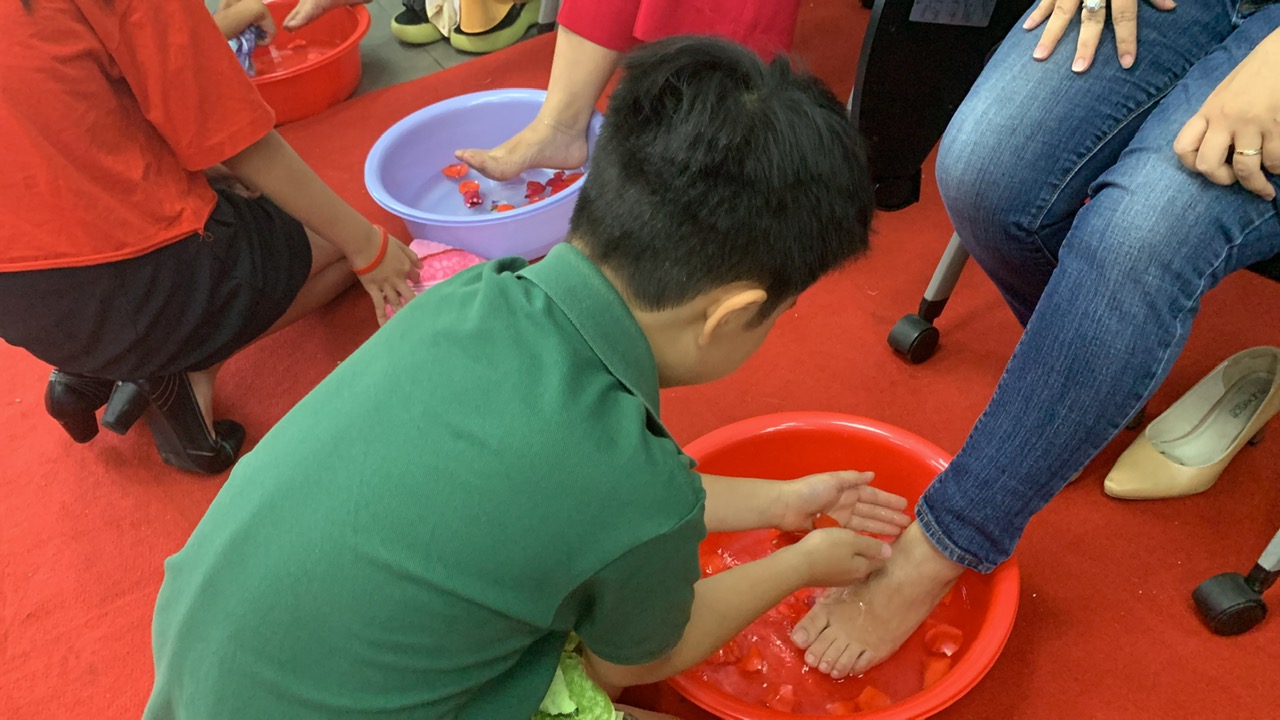 Tại buổi lễ, những người con đã thực hiện nghi thức rửa chân cho cha mẹ thể hiện tinh thần báo ân đối với đấng sinh thành. Đại Đức chia sẻ về đôi bàn chân mẹ, sao nứt nẻ, khô cằn vì lo mưu sinh nuôi nấng con mong cho con được học hành, khôn lớn bằng bạn bằng bè mà quên đi việc chăm sóc chính bản thân mình.