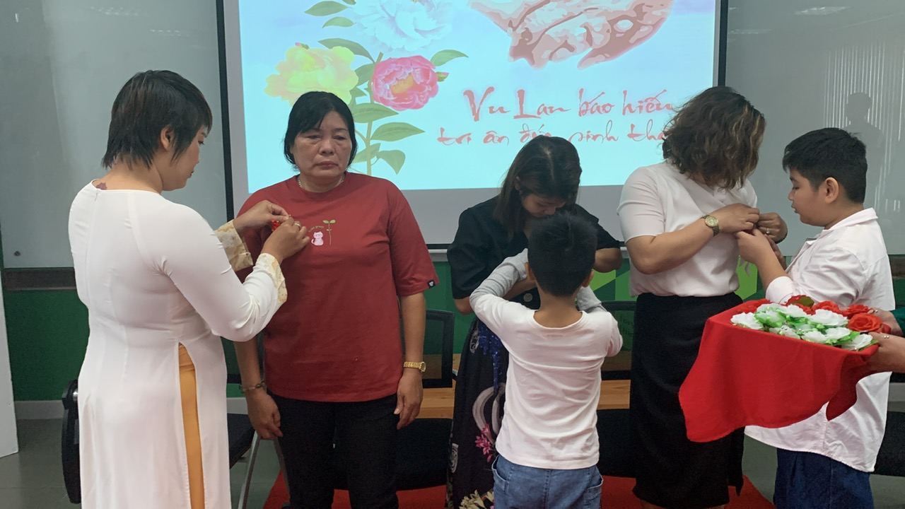 Hội chúng thực hiện nghi thức Bông hồng cài áo và xúc động dâng lời cảm niệm công ơn cha mẹ. Toàn thể hội chúng đã dâng trào cảm xúc với những lời ca ngợi về công ơn trời biển của hai đấng sinh thành mà Đại đức Thích Trí Định đã chia sẻ qua pháp thoại về Vu lan Báo hiếu.