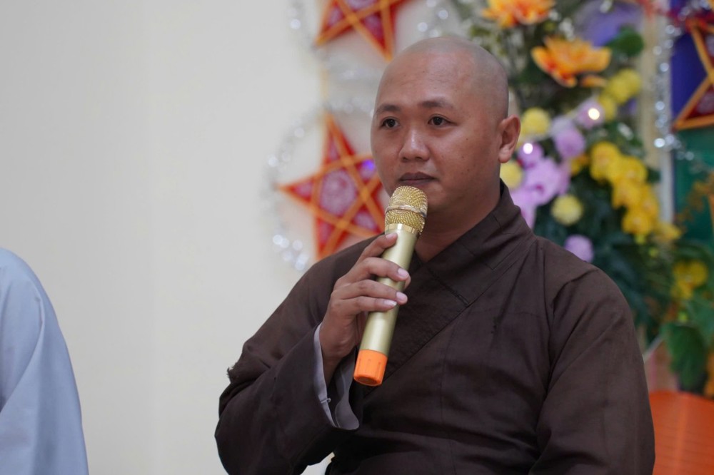 Trong không khí đậm chất đạo vị, Đại đức Thích Tuệ Giải, thay lời Thượng tọa Hiệu trưởng, đã có đôi lời chia sẻ, ôn lại những kỷ niệm gắn bó dưới mái trường Trung Cấp Phật học Kiên Giang xưa. Đại đức nhấn mạnh, những ngày tháng học tập nơi đây chính là nền tảng quý giá, là hành trang để chư Tăng Ni vững bước trên con đường hoằng pháp lợi sinh.