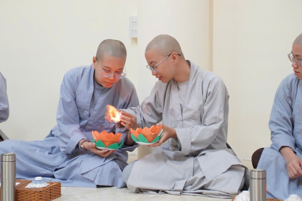Buổi lễ mở đầu bằng nghi thức truyền đăng – ánh sáng từ bi và trí tuệ được lan tỏa trong không gian tĩnh lặng, tiếp nối là phần thưởng trà và lắng nghe các thiền ca, đưa đại chúng trở về với nội tâm tỉnh thức, gắn kết tình pháp lữ giữa thầy và trò, giữa huynh đệ đồng tu.