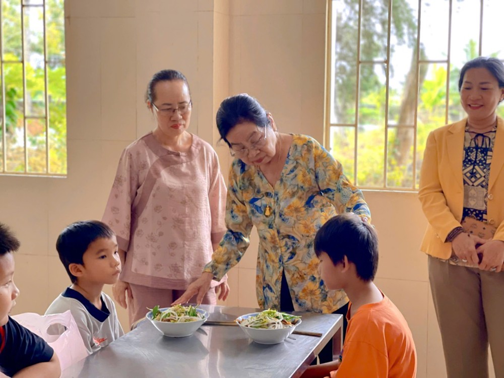 Phát biểu tại buổi gặp mặt, Bác sĩ Trần Thủy Cần thay mặt đoàn gửi lời chúc mừng năm mới an lành, sức khỏe và nhiều thành tựu đến chư Tôn đức cùng toàn thể nhân viên Trung tâm. Bà cho biết, hoạt động thăm hỏi, trao quà mỗi dịp Tết đến Xuân về đã được Ban Bảo trợ duy trì trong nhiều năm qua, thể hiện tinh thần sẻ chia, trách nhiệm với cộng đồng, đặc biệt là đối với các em nhỏ có hoàn cảnh đặc biệt khó khăn. Những phần quà tuy giá trị vật chất không lớn nhưng chứa đựng tình cảm chân thành, góp phần động viên các em thêm niềm tin, nghị lực vươn lên trong học tập và cuộc sống.