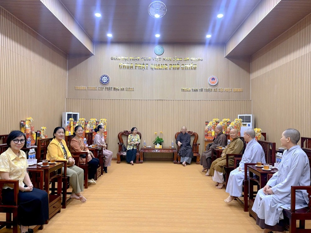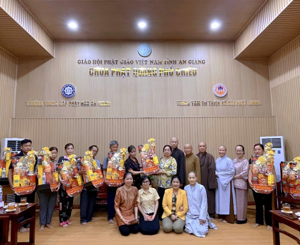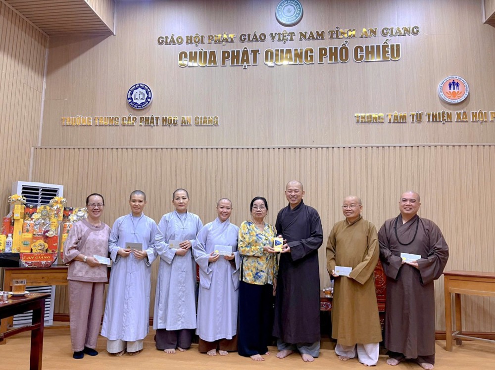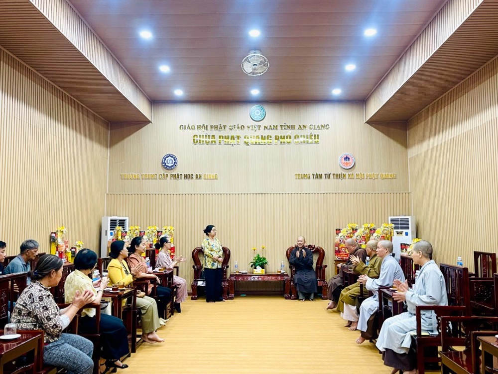 Đón tiếp đoàn có: Thượng tọa Thích Minh Nhẫn – Phó Trưởng ban Thường trực Ban Trị sự GHPGVN tỉnh An Giang, Giám đốc Trung tâm TTXH Phật Quang; Sư cô Thích Nữ Huệ Tánh – Phó Giám đốc Thường trực Trung tâm; Đại đức Thích Tuệ Giải – Phó Giám đốc Trung tâm; Đại đức Thích Pháp Trí – Ủy viên Thường trực BTS GHPGVN tỉnh An Giang.