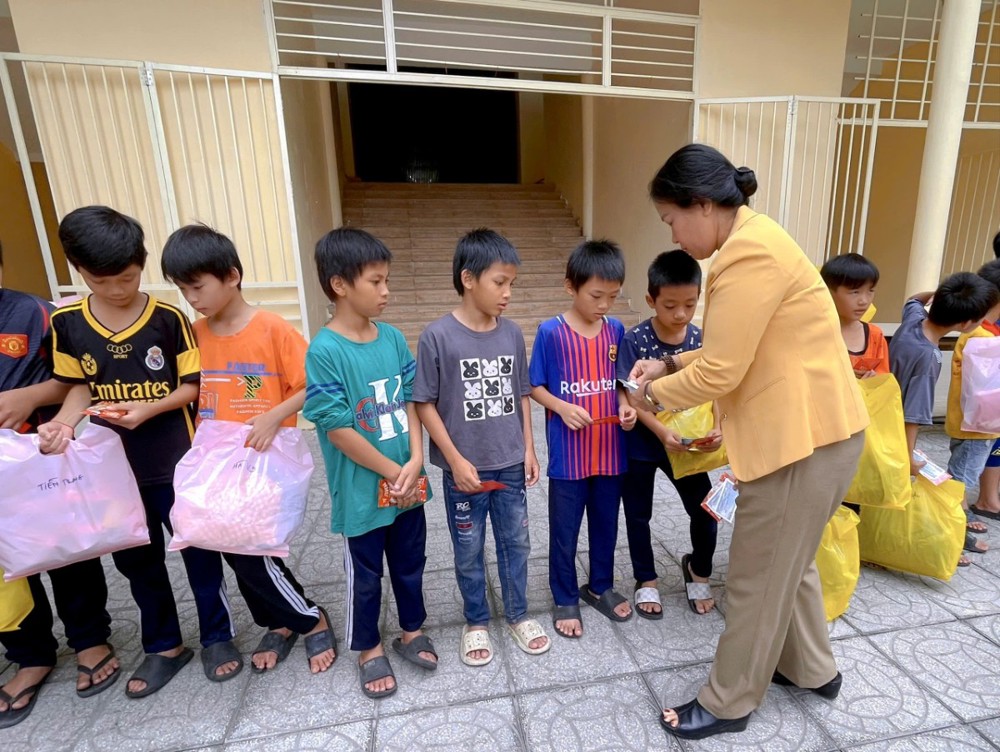 Dịp này, Ban Bảo trợ đã trao tặng quà Tết gồm quần áo, bao lì xì, tổ chức bữa cơm trưa thân mật cho các em học sinh và nhân viên Trung tâm. Những món quà Xuân đầy nghĩa tình đã góp phần mang đến niềm vui trọn vẹn, giúp các em cảm nhận được sự yêu thương, sẻ chia từ cộng đồng trong những ngày Tết cổ truyền của dân tộc.