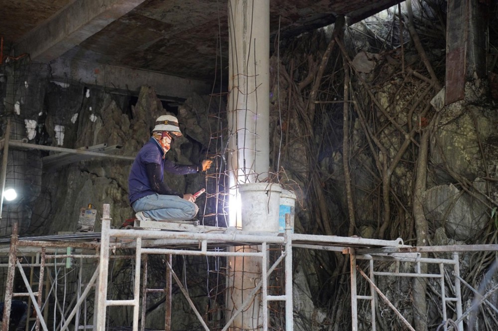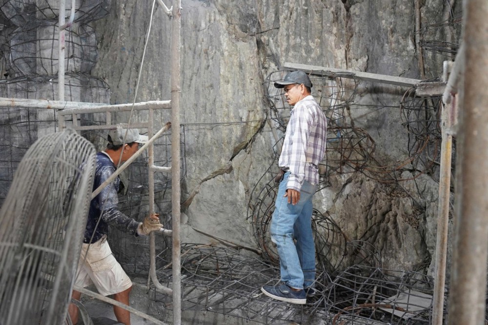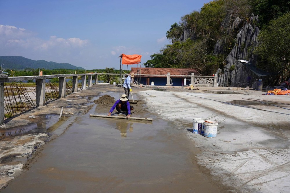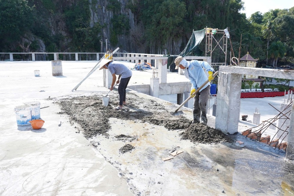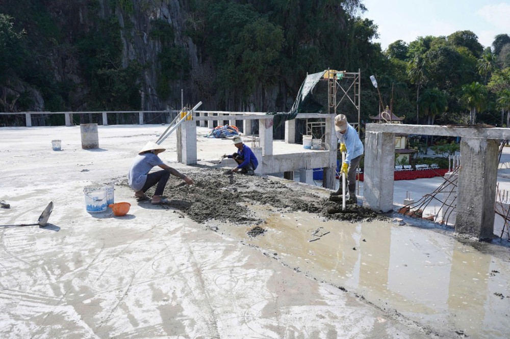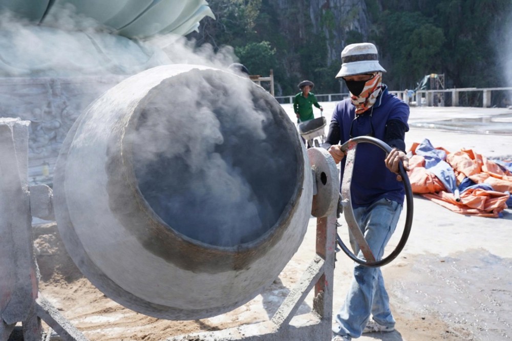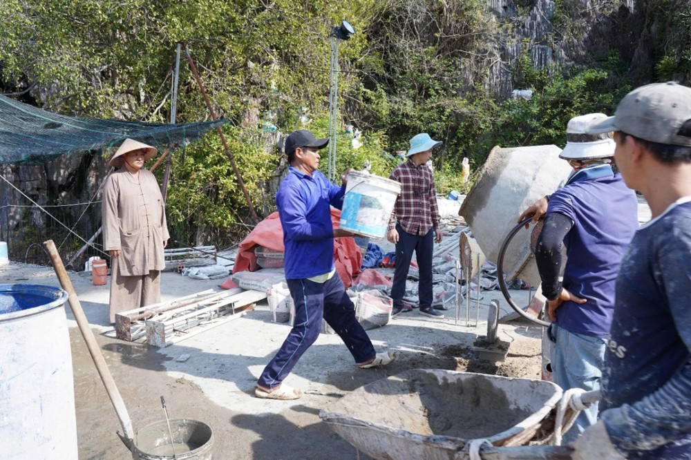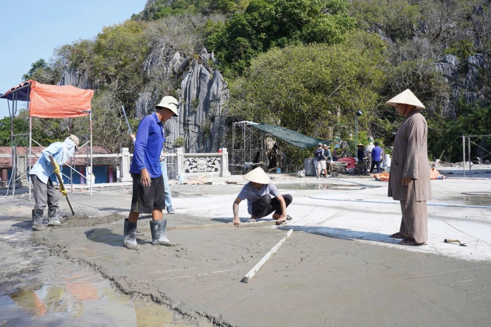 Hiện nay, hạng mục cán lót nền khu vực tượng đài Quán Thế Âm đang được triển khai đồng loạt. Đây là công đoạn nền tảng, giữ vai trò quan trọng trong việc hoàn thiện mặt bằng sinh hoạt và chiêm bái của Phật tử, đồng thời chuẩn bị cho các bước tiếp theo như lát đá, trang trí và bài trí không gian lễ bái trang nghiêm nơi tượng đài.