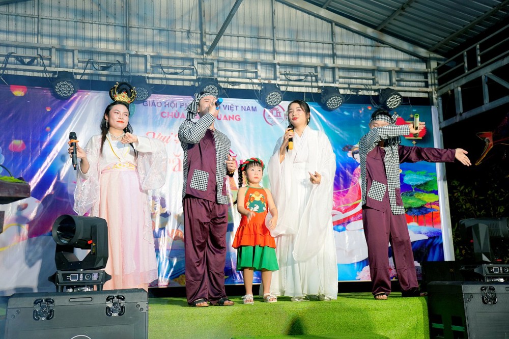 Đêm hội thêm phần sôi động với các tiết mục văn nghệ, hoạt cảnh “Chú Cuội – Chị Hằng” cùng nhiều tiết mục hấp dẫn, mang lại cho các em thiếu nhi những tiếng cười hồn nhiên và kỷ niệm đáng nhớ.