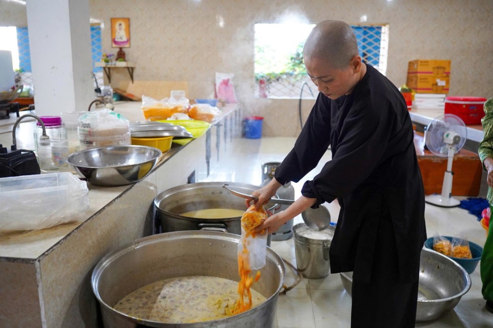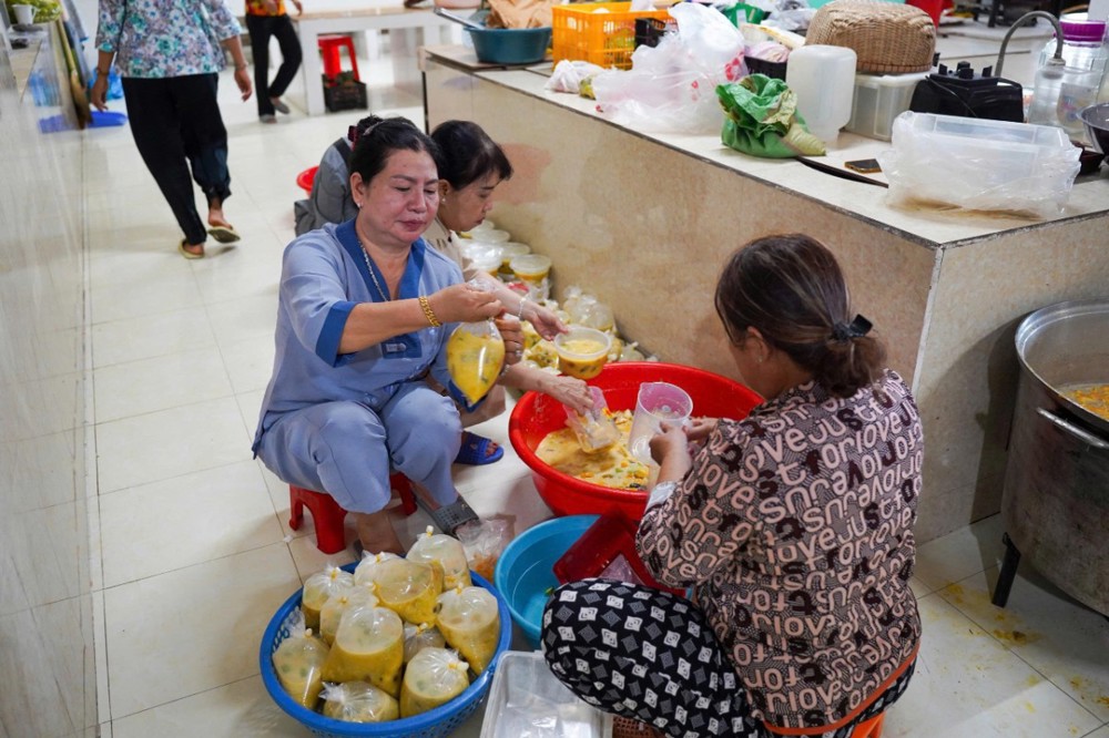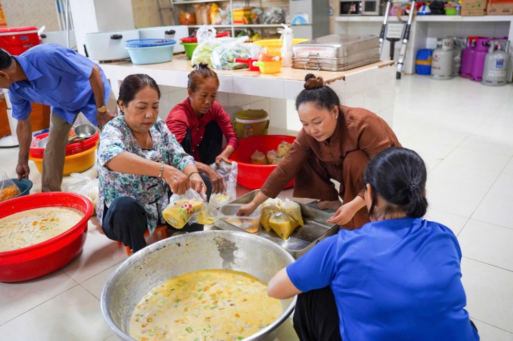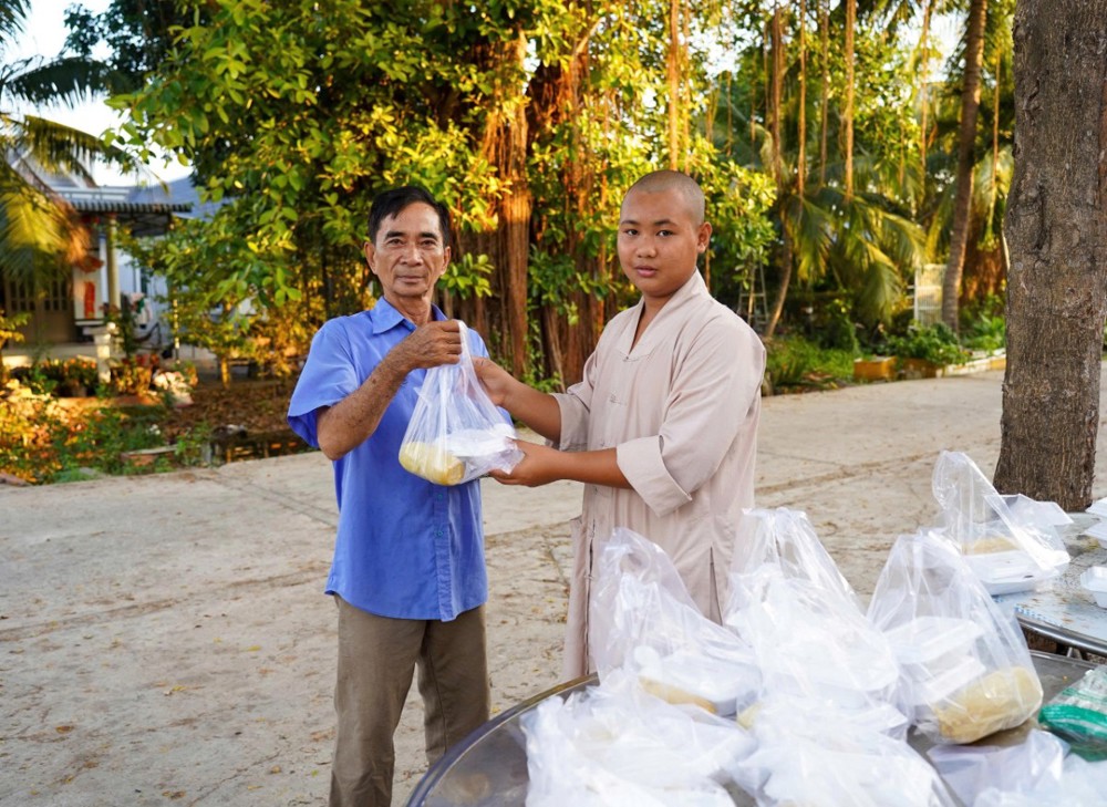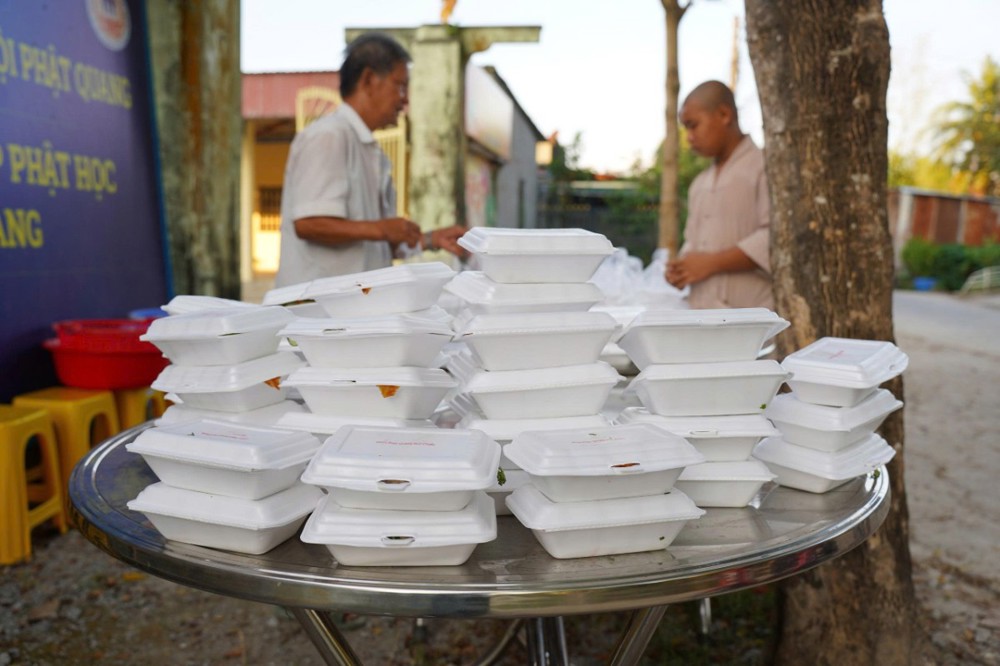 Mỗi suất ăn gồm cơm hộp, món kiểm và bắp, trị giá 40.000 đồng. Tổng kinh phí thực hiện hơn 8 triệu đồng, được vận động từ sự chung tay đóng góp của quý Phật tử và các nhà hảo tâm.