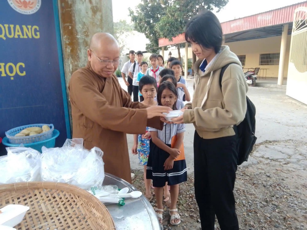 Trong không khí ấm áp của ngày đầu xuân, hình ảnh quý Thầy ân cần trao những suất cơm chay đã để lại nhiều cảm xúc đẹp trong lòng người dân. Đây cũng là một trong những hoạt động thiết thực thể hiện vai trò của Phật giáo trong việc đồng hành cùng bà con và các em học sinh, góp phần xây dựng đời sống nhân ái, nghĩa tình tại địa phương.