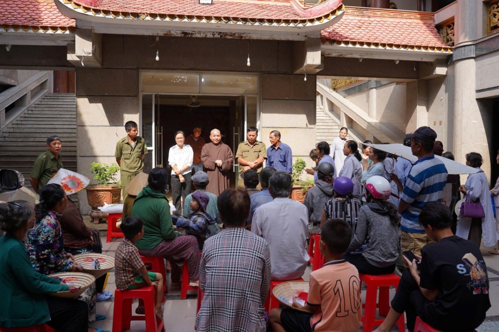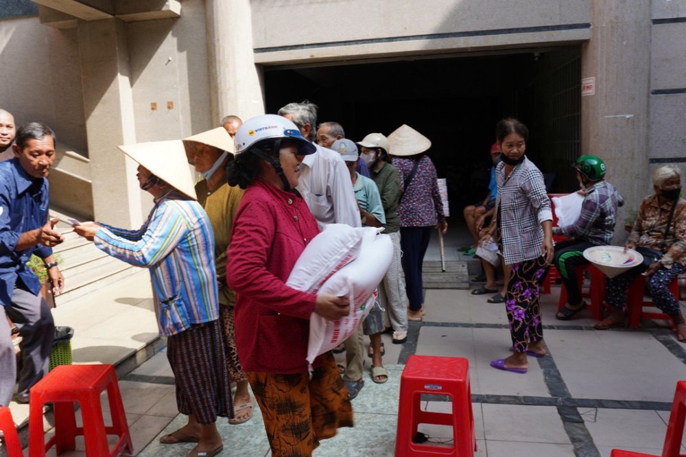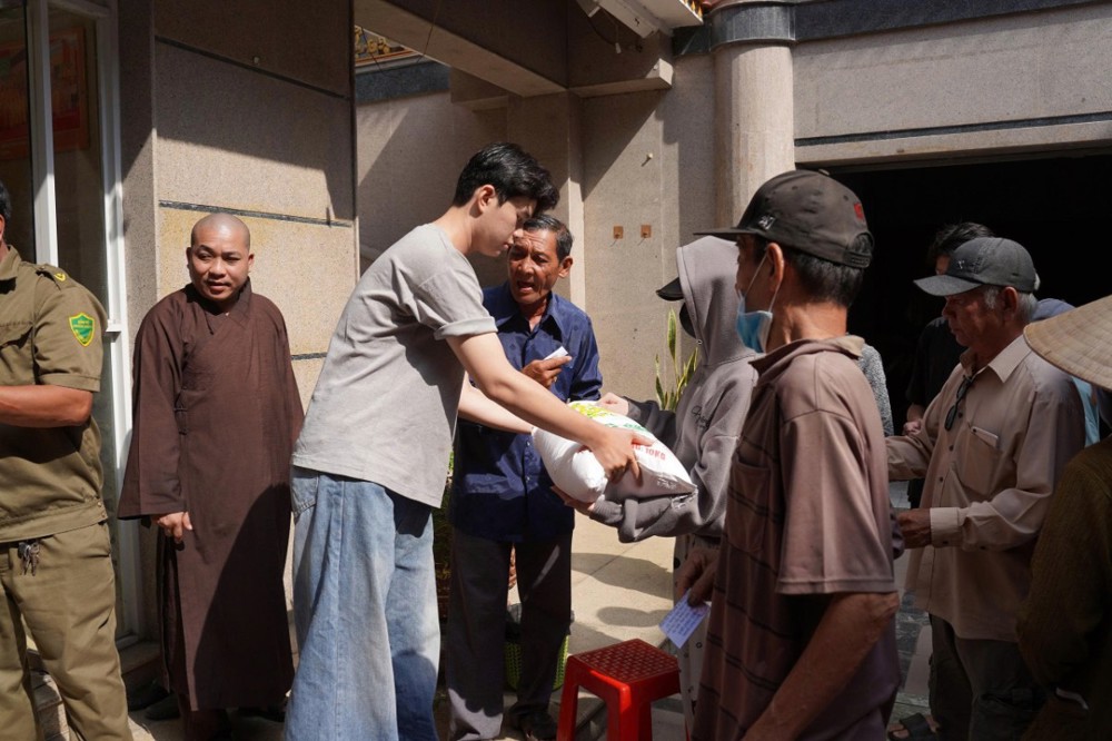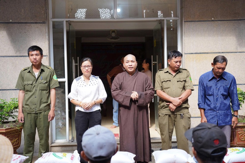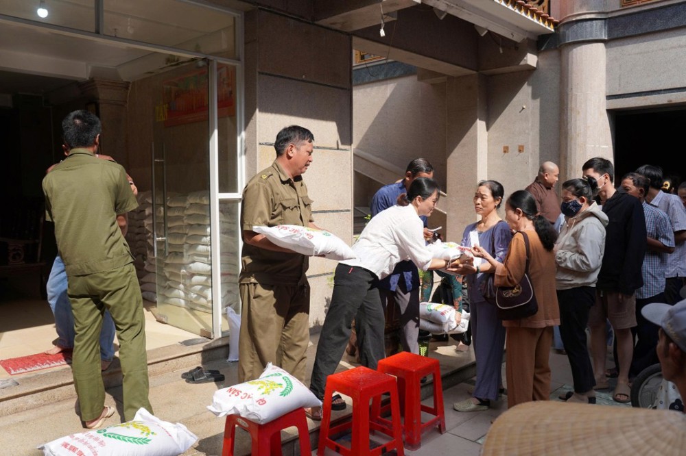 Nhân dịp này, Phật tử Kha Thị Mỹ Ngọc – pháp danh Phúc Nghiêm đã phát tâm trao tặng 2 tấn gạo đến bà con có hoàn cảnh khó khăn. Nghĩa cử thiết thực này không chỉ góp phần hỗ trợ đời sống người dân mà còn lan tỏa tinh thần từ bi cứu khổ của Phật giáo, thể hiện hạnh nguyện nhập thế, gắn đạo với đời.