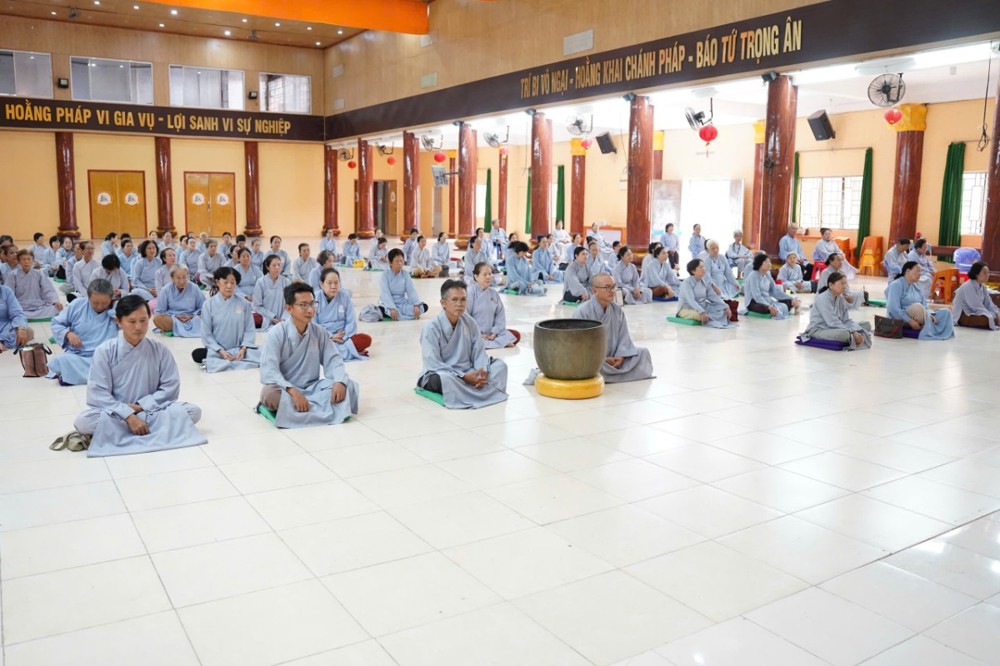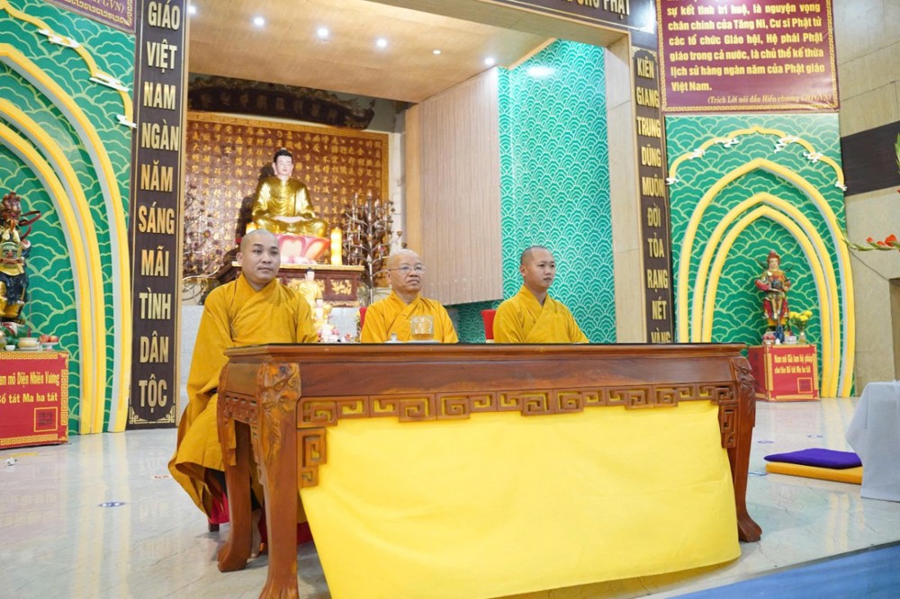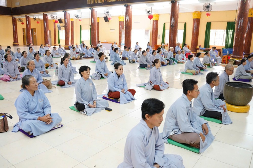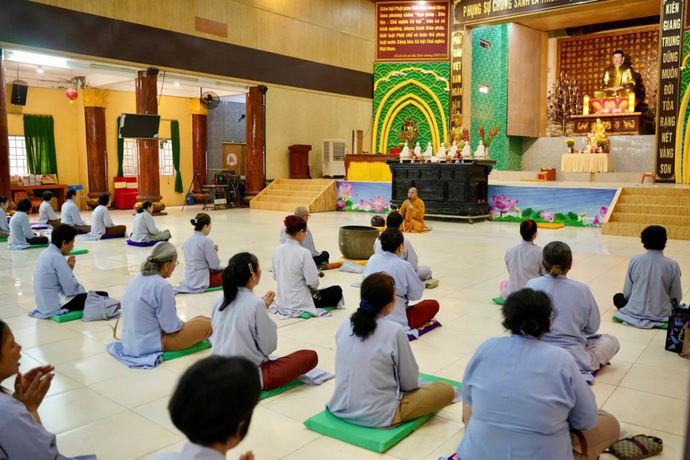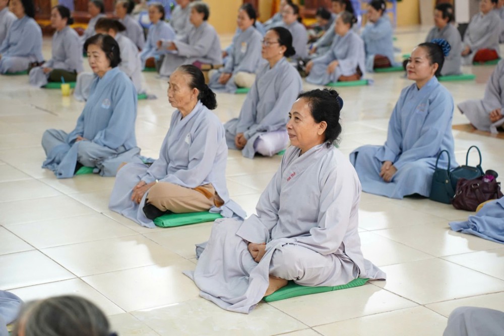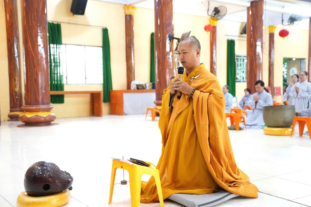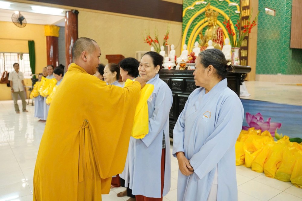 Đúng 8h00, Thượng tọa Thích Minh Nhẫn – Ủy viên Thư ký HĐTS, Phó Trưởng ban Thường trực BTS GHPGVN tỉnh An Giang, trụ trì chùa Phật Quang, đã quang lâm truyền trao giới pháp Bát quan trai. Đồng thời, sách tấn Phật tử tinh tấn tu tập, giữ gìn giới hạnh để tăng trưởng công đức và trí tuệ.