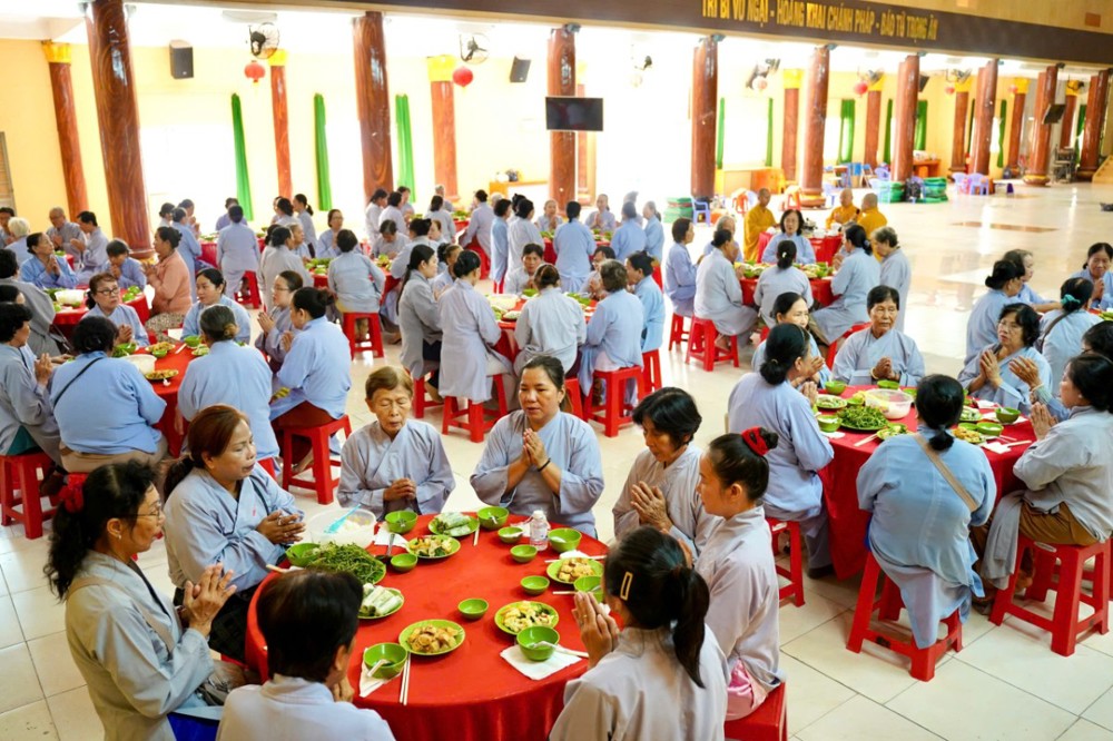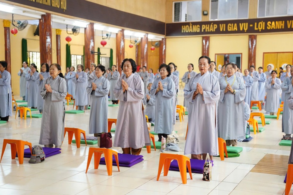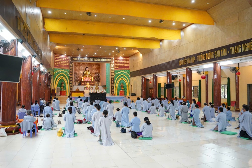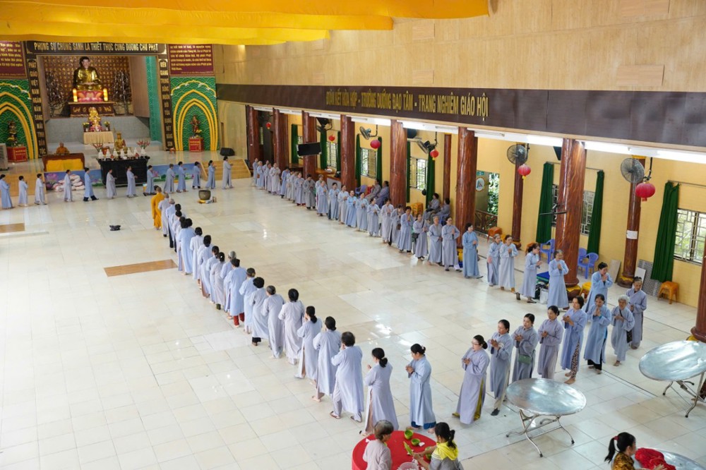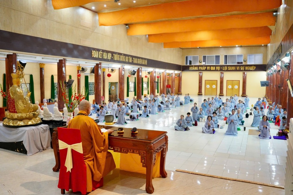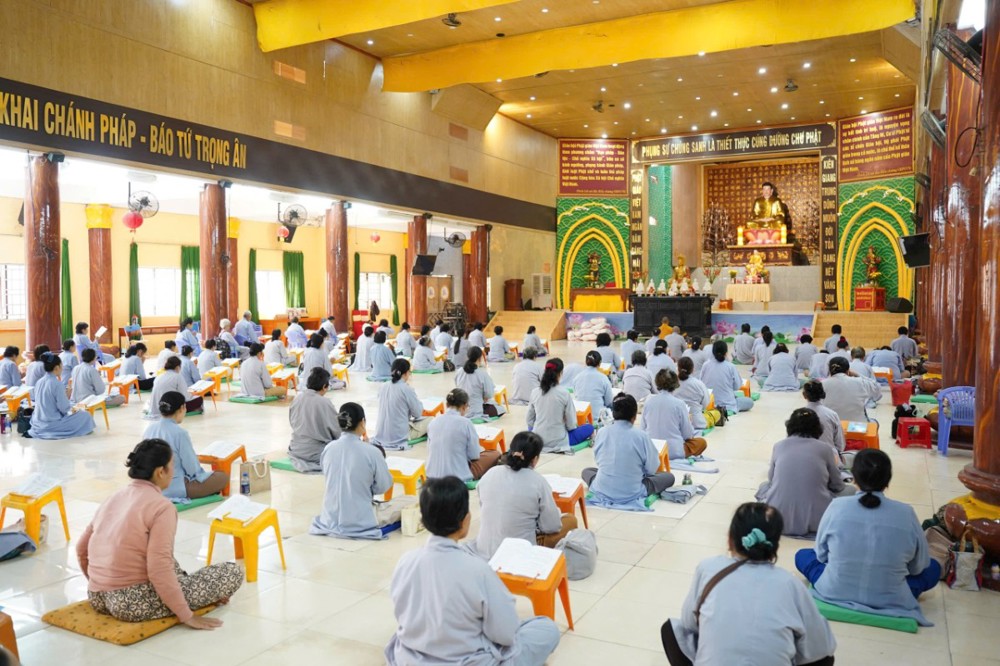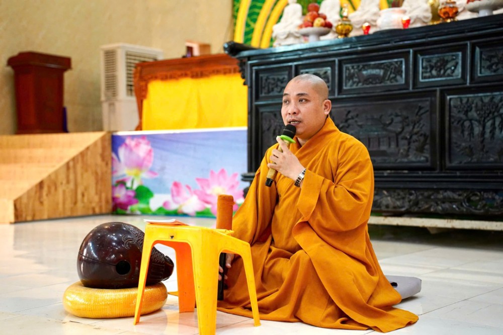 Đúng 8h00, Thượng tọa Thích Minh Nhẫn – Ủy viên Thư ký HĐTS, Phó Trưởng ban Thường trực BTS GHPGVN tỉnh An Giang, trụ trì chùa Phật Quang, đã quang lâm truyền trao giới pháp Bát quan trai. Đồng thời, sách tấn Phật tử tinh tấn tu tập, giữ gìn giới hạnh để tăng trưởng công đức và trí tuệ.
