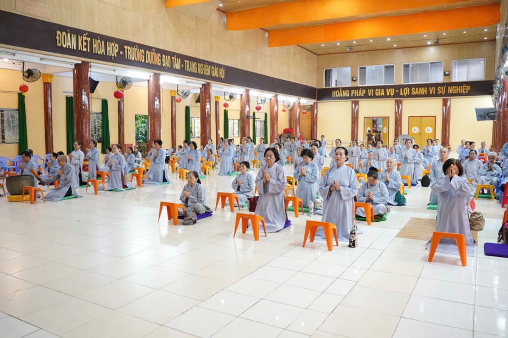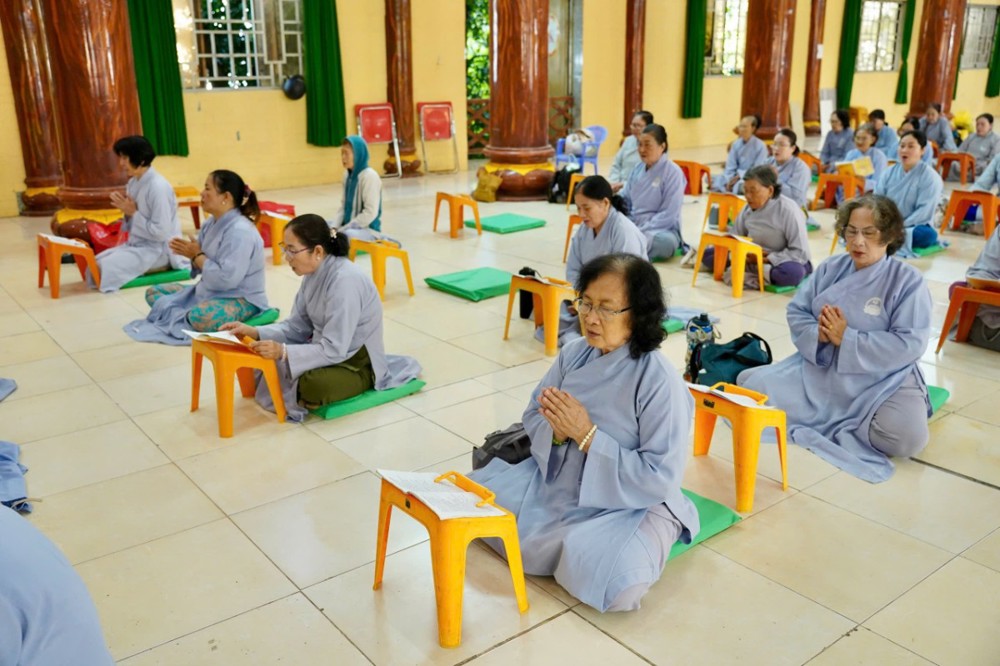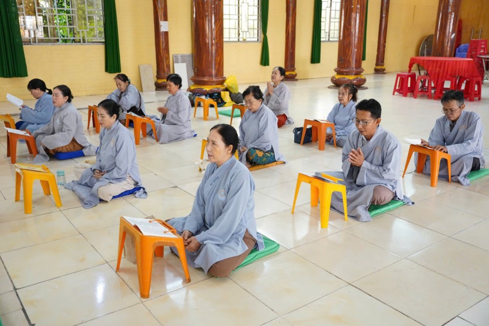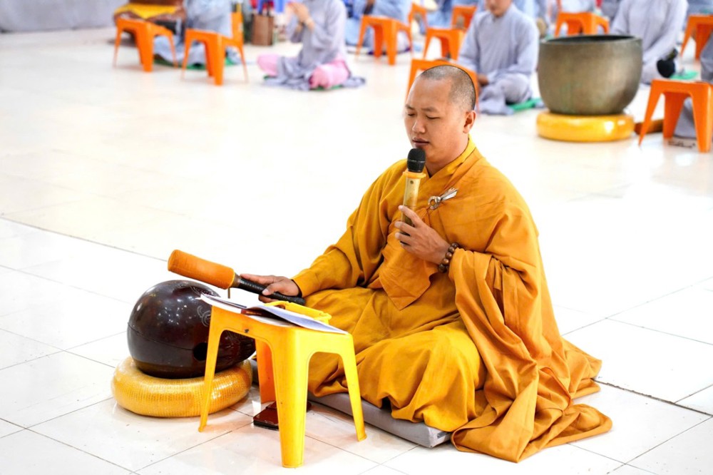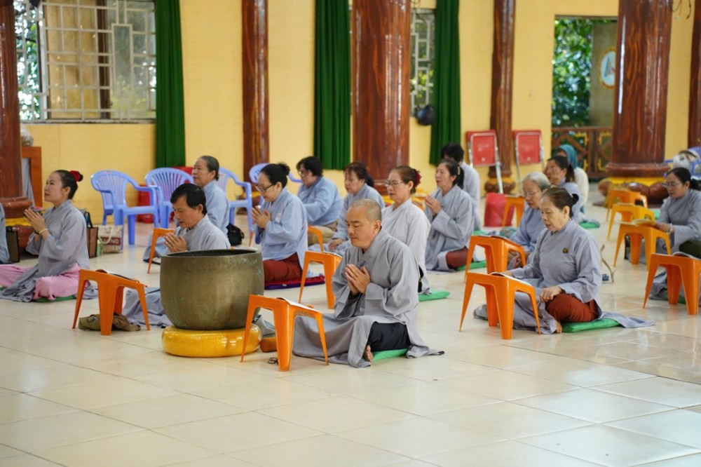 Sau đó, Đại đức Thích Định Tín cùng đạo tràng trì tụng kinh Sám Hối, kinh Phổ Môn, lễ Phật hồng danh; tiếp đến là thời khóa cúng ngọ, thọ trai trong chánh niệm và kinh hành niệm Phật.