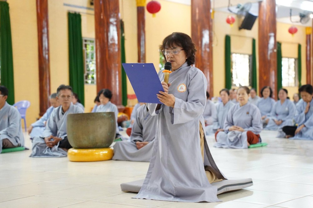 Khóa tu mở đầu bằng thời khóa niệm Phật do Đại đức Thích Tuệ Túc – Phó ban Hướng dẫn Phật tử GHPGVN tỉnh An Giang hướng dẫn, giúp đại chúng an định thân tâm.