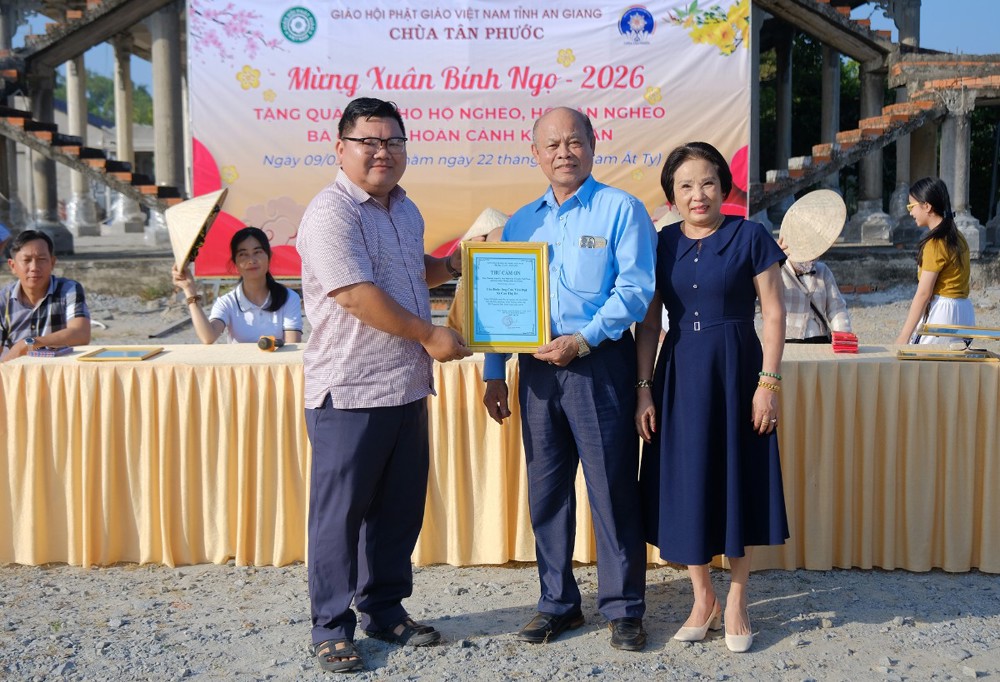Chương trình được thực hiện với sự đồng hành của gia đình ông Cao Văn Đại – bà Cao Thị Bé, dưới sự hướng dẫn của Sư cô trụ trì Thích Nữ Huệ Tánh – Phó Văn phòng Ban Trị sự GHPGVN tỉnh An Giang. Đến dự có Đại đức Thích Tuệ Giải – Phó Trưởng ban Thường trực Ban Từ thiện Xã hội GHPGVN tỉnh An Giang; Ni sư Thích Nữ Như Liên – Phó trụ trì chùa Tân Phước; cùng đại diện chính quyền và các ban, ngành địa phương.