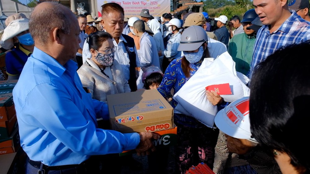 Theo Ban Tổ chức, 100 phần quà do gia đình ông Cao Văn Đại – bà Cao Thị Bé phát tâm ủng hộ, mỗi phần gồm gạo, mì, nước tương và tiền mặt, nhằm hỗ trợ thiết thực cho sinh hoạt của các gia đình khó khăn.