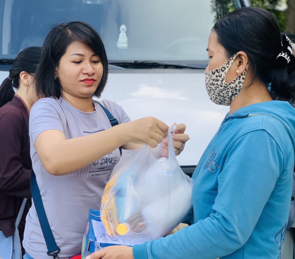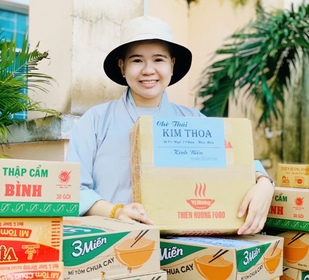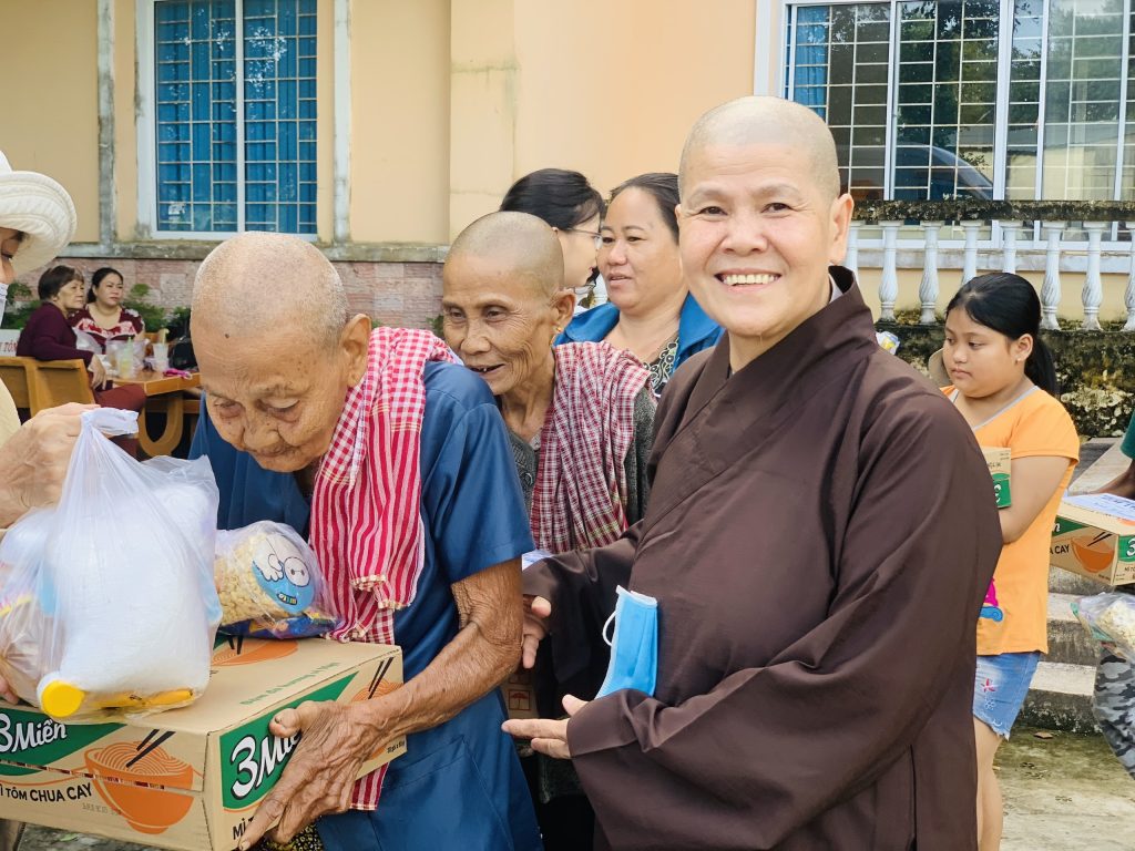 Tham dự buổi trao quà có NS. Thích Nữ Tường Hạnh - Trụ trì chùa Thiền Lâm - Trưởng ban Từ thiện huyện Hóc Môn - Phó ban Ni giới huyện - UV Ban Từ thiện GHPGVN TP.HCM - Trưởng đoàn cùng quý chư Ni đang tu học tại chùa và quý Phật tử chùa Thiên Lâm.