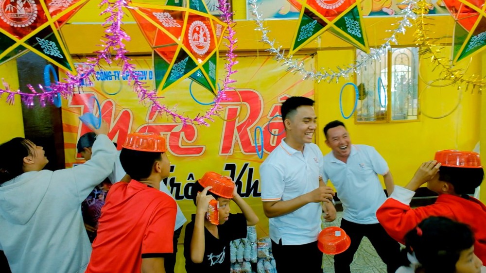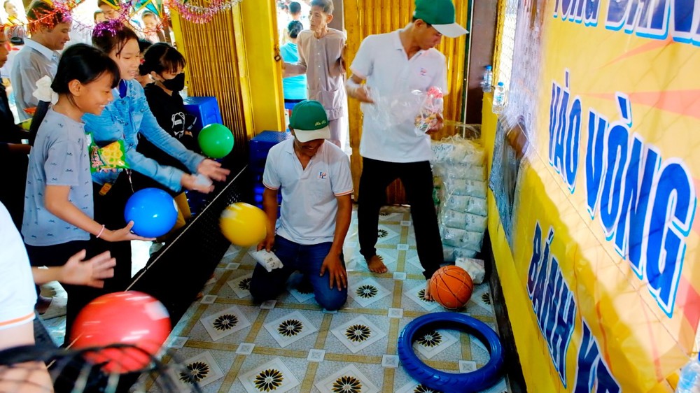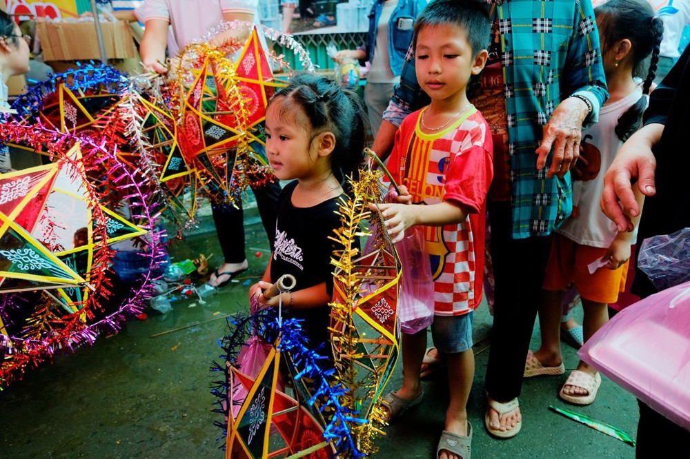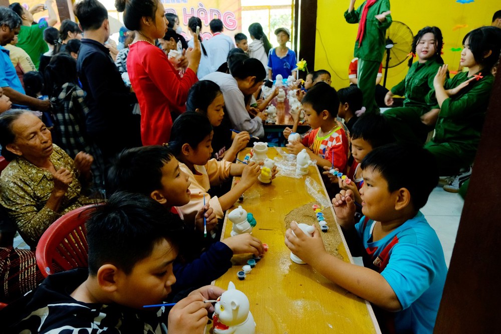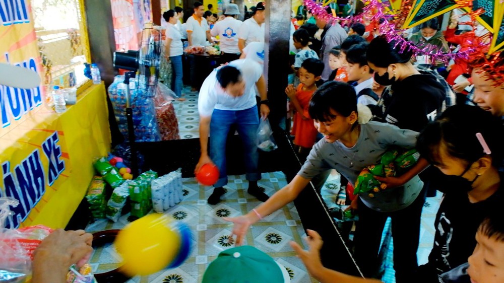 Không khí đêm hội trở nên rộn ràng và ấm áp. Hàng trăm em nhỏ cùng phụ huynh đã có mặt trong khuôn viên chùa, cùng nhau thưởng thức những tiết mục văn nghệ đặc sắc, tham gia các gian hàng trò chơi như: gian hàng sáng tạo, vòng quay may mắn, ném lon, tưng banh vào vòng,… Mỗi trò chơi đều mang lại niềm vui và những phần quà đáng yêu, khiến tiếng cười rộn ràng vang lên khắp sân chùa, hòa cùng ánh đèn lồng rực rỡ và tiếng nhạc Trung thu sôi động, tạo nên bầu không khí vui tươi, đoàn kết và chan chứa yêu thương.