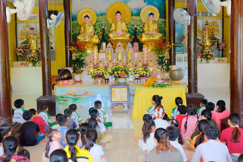 Trước khi bước vào buổi lễ chính, tại ngôi chánh điện trang nghiêm, Đại đức Thích Tuệ Giải, Ủy viên Thường trực BTS tỉnh, Phó ban Thường trực ban Từ thiện Xã hội GHPGVN tỉnh An Giang, đã có bài pháp ngắn chia sẻ về lòng hiếu thảo của người con Phật. Đại đức nhấn mạnh, người Phật tử chân chính luôn ghi nhớ công ơn sinh thành dưỡng dục của cha mẹ, biết đền đáp ân nghĩa xã hội, và tri ân đàn na tín thí - những người đã góp phần nuôi dưỡng Tam bảo và các hoạt động thiện lành.