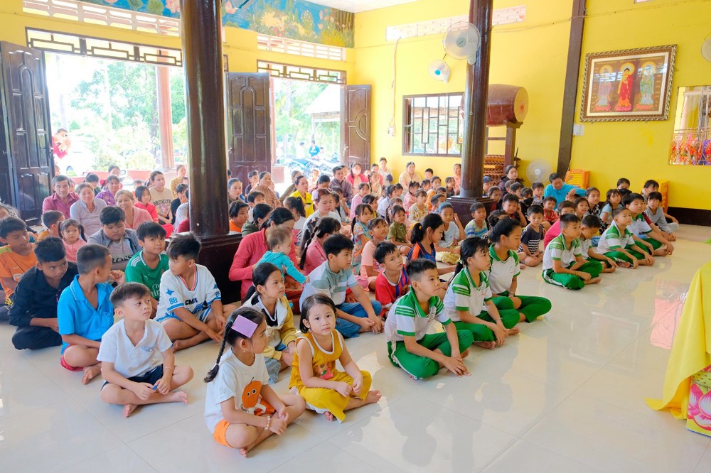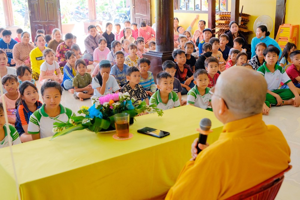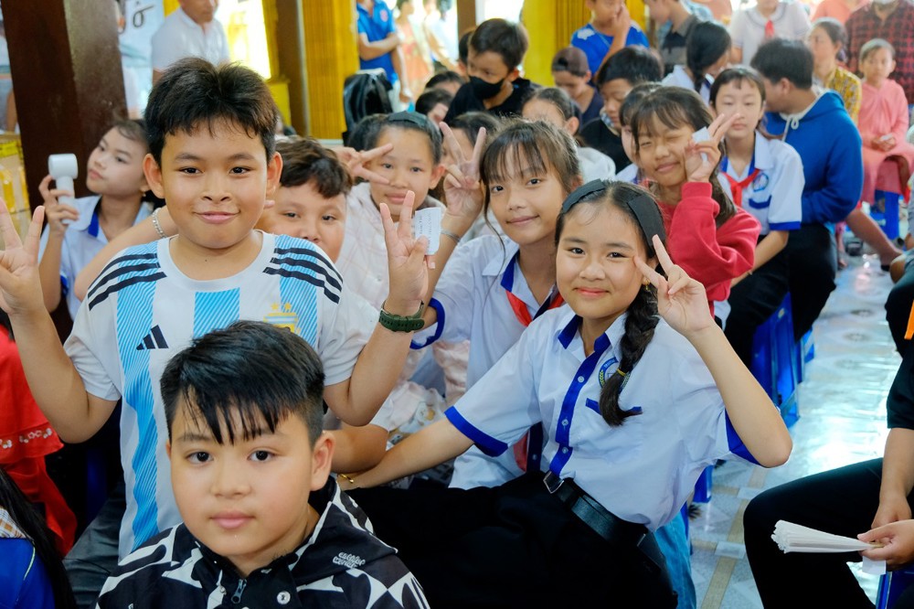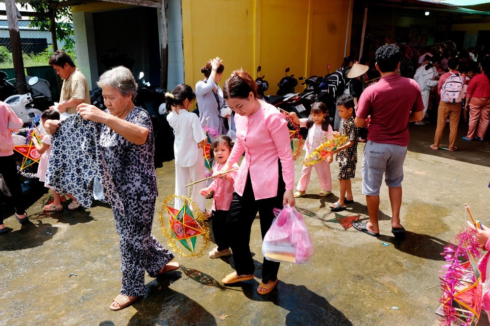 Trong chương trình, nhà chùa đã trao hàng trăm phần quà Trung thu gồm bánh kẹo, sữa, lồng đèn và dụng cụ học tập cho các em nhỏ tại địa phương. Những phần quà tuy nhỏ nhưng chứa đựng tấm lòng của chư Ni và Phật tử, góp phần thắp sáng nụ cười hồn nhiên của trẻ thơ vùng quê An Giang.