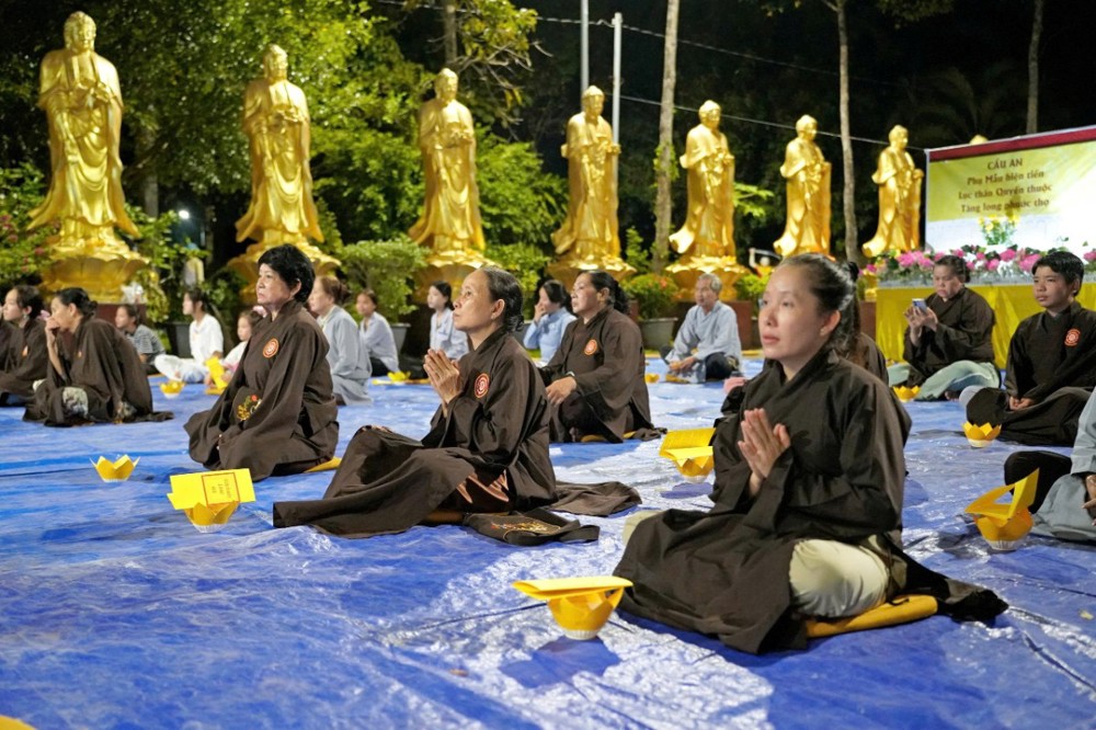 Đặc biệt, toàn thể đại chúng đã đồng tâm xướng tụng 48 đại nguyện của Đức Phật A Di Đà, phát nguyện hành trì theo hạnh nguyện cao quý của Ngài, đồng thời thực hiện nghi thức cầu nguyện cho cha mẹ hiện tiền, thân bằng quyến thuộc và chư hương linh quá vãng.