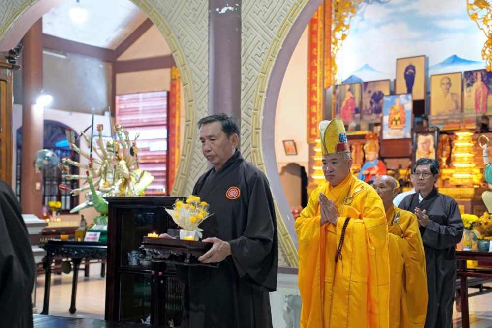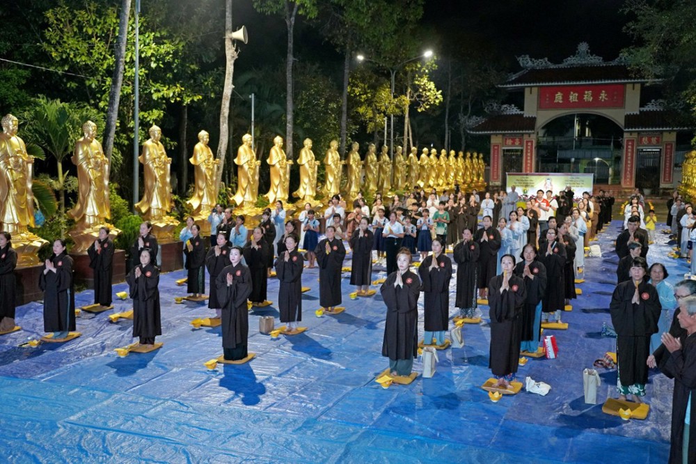 Buổi lễ khép lại trong không khí thiêng liêng với nghi thức phát nguyện trì danh hiệu Phật A Di Đà, trì tụng thần chú Om Mani Padme Hum, hồi hướng công đức và lời phát nguyện kết thúc do Thượng tọa Sám chủ chủ trì. Toàn thể đạo tràng đồng chắp tay niệm Phật, nguyện đem ánh sáng từ bi và trí tuệ của Đức Phật soi chiếu vào đời sống, góp phần xây dựng xã hội an lạc, đạo pháp trường tồn, dân tộc vững bền.
